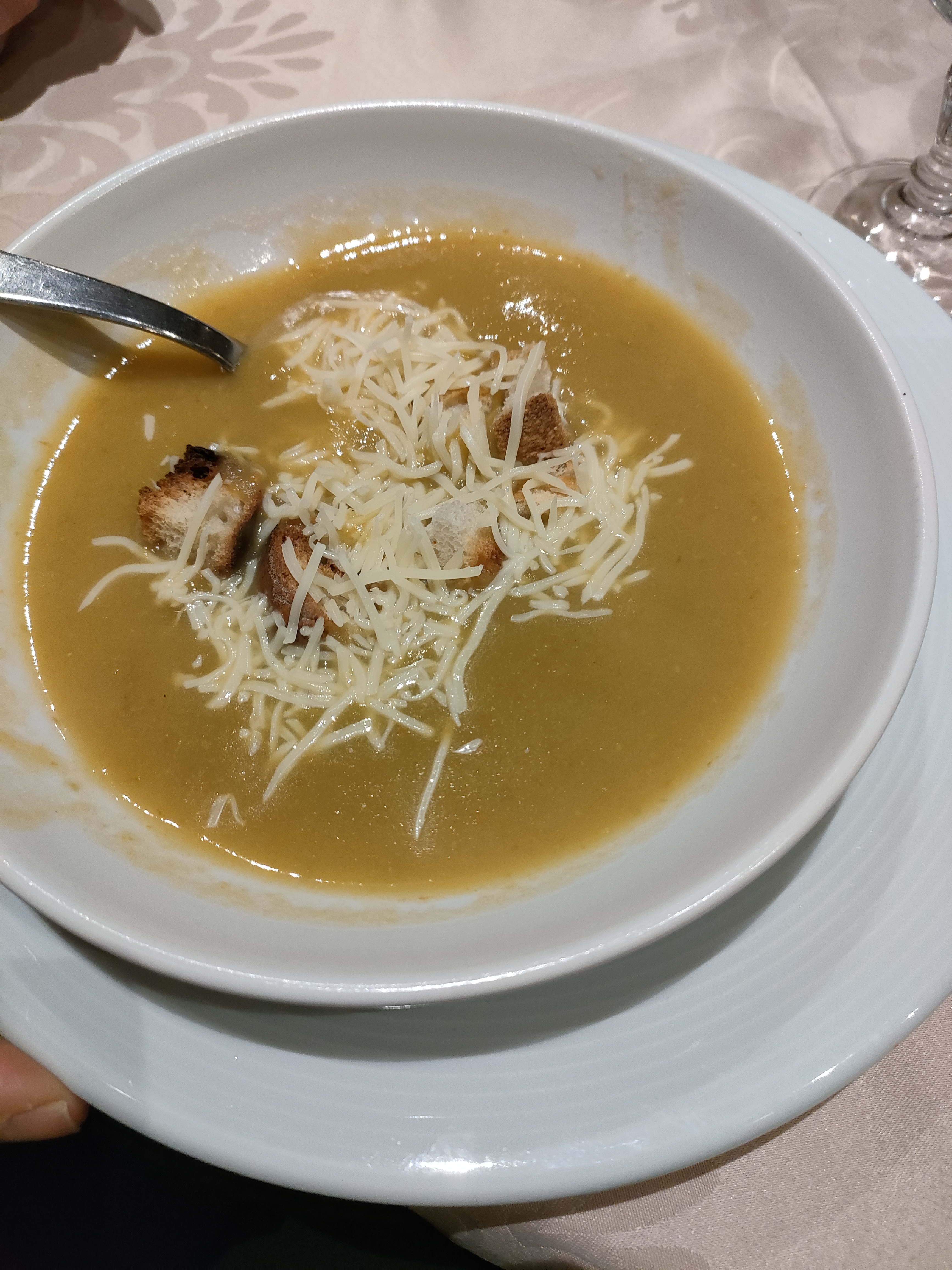 Le dîner était très bon et copieux, nous avons même eu quelques secondes et une très grande portion de dessert. Personnel très attentionné et sympathique. Mais la grande désillusion est venue au petit-déjeuner : il fallait remplir un bon de commande la veille au soir pour que le petit-déjeuner soit ensuite servi, monté sur des plateaux à l'avance. Le tout rappelait un peu le service à manger dans une maison de retraite ou un hôpital. Quiconque commandait du pain grillé devait venir dès le début du petit-déjeuner s'il voulait le déguster pendant qu'il était encore chaud. Astuce : Plus il y a de croix sur le bon de commande, plus le plateau petit-déjeuner est riche ;-)