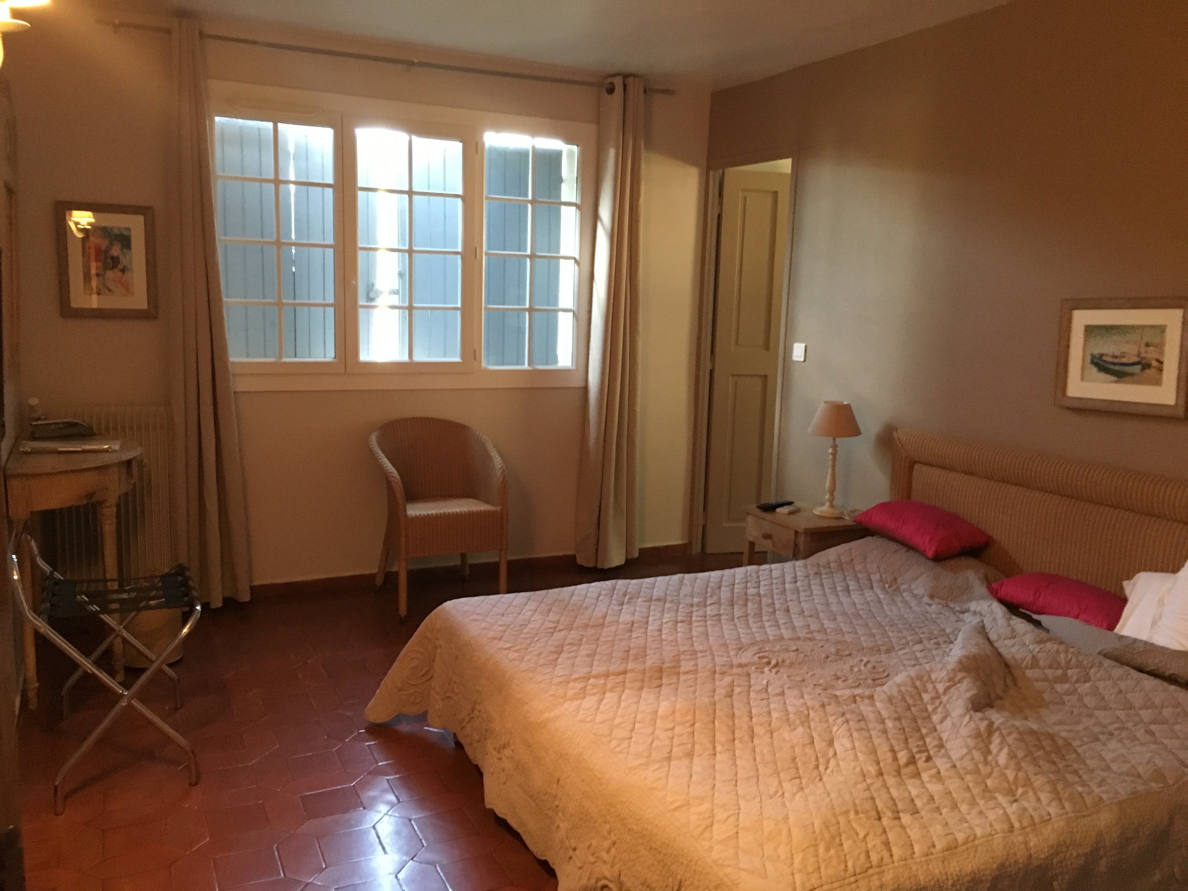 Chambre spacieuse et calme, grande salle de bain, malheureusement sans bidet. Pas de restaurant, donc promenade au village. Endroit romantique pour profiter de quelques belles journées.