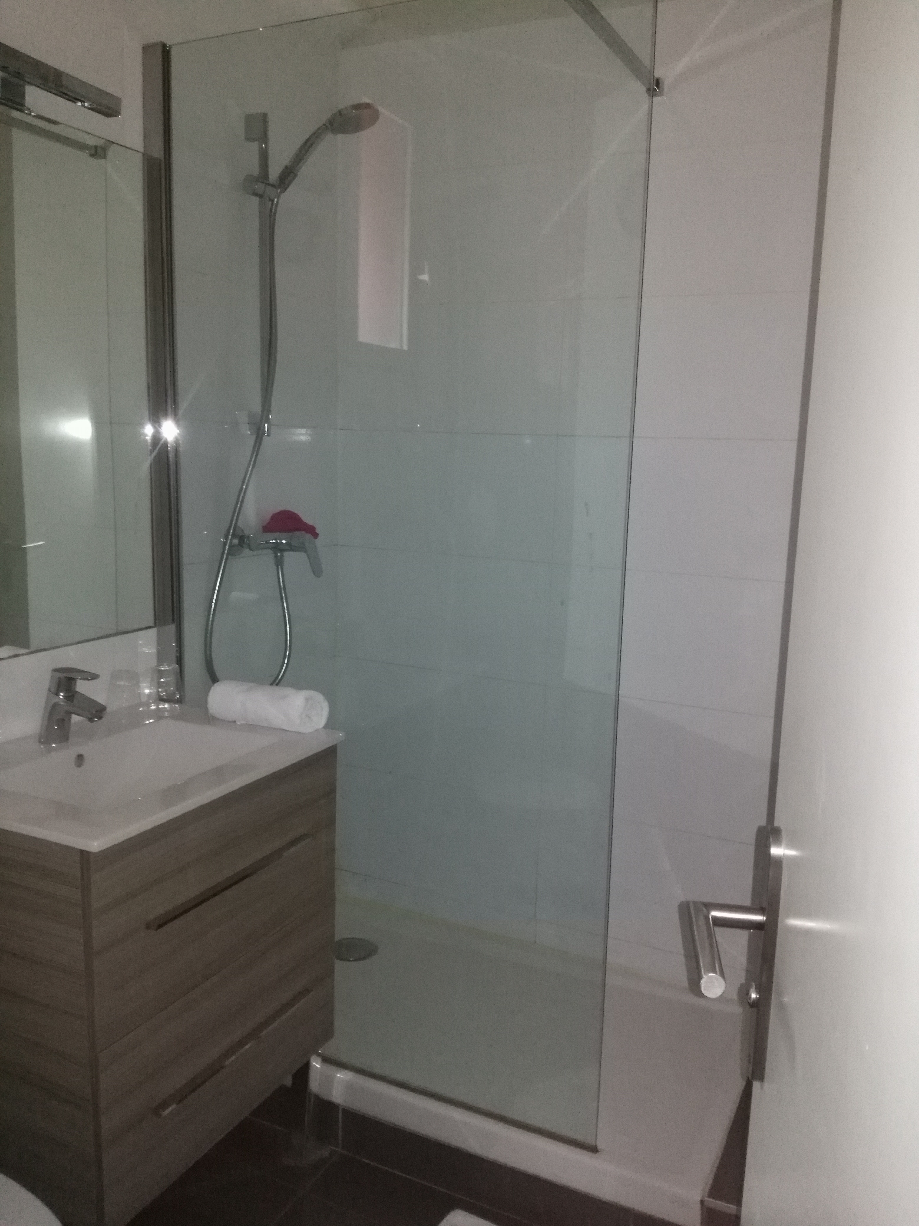 Très déçus par l'accueil, la première chose qui nous a été demandée, c'est de payer notre chambre, nous trouvons cette demande très cavalière d'autant que l'on avait même pas vu la chambre….. évier cassé, propreté de la salle de bain très moyenne et poignées des tiroirs SDB abîmés, extérieur laissé à la bad…..