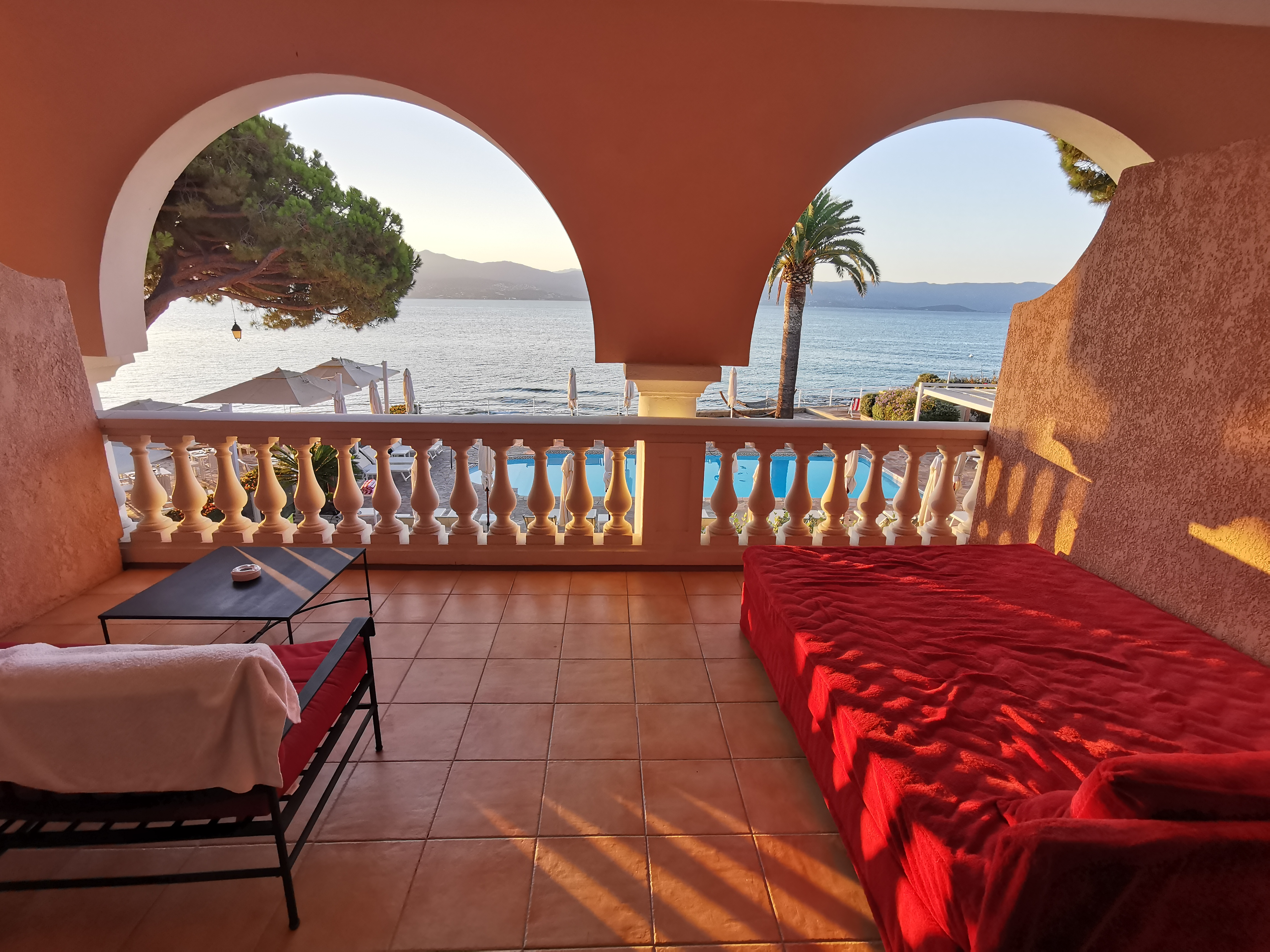 Excellente situation; chambre (16) avec une grande et agréable terrasse privative, sans vis-à-vis, avec vue sur le golfe d'Ajaccio et à seulement quelques mètres de l'eau ! Chambre très propre et lit très confortable. Petit-déjeuner et restaurant dans un agréable patio sur une grande terrasse ombragée avec vue sur la mer. Plage privative et piscine (eau salée) très agréables. Parking privé et ombragé dans l'hôtel (avec borne de recharge)