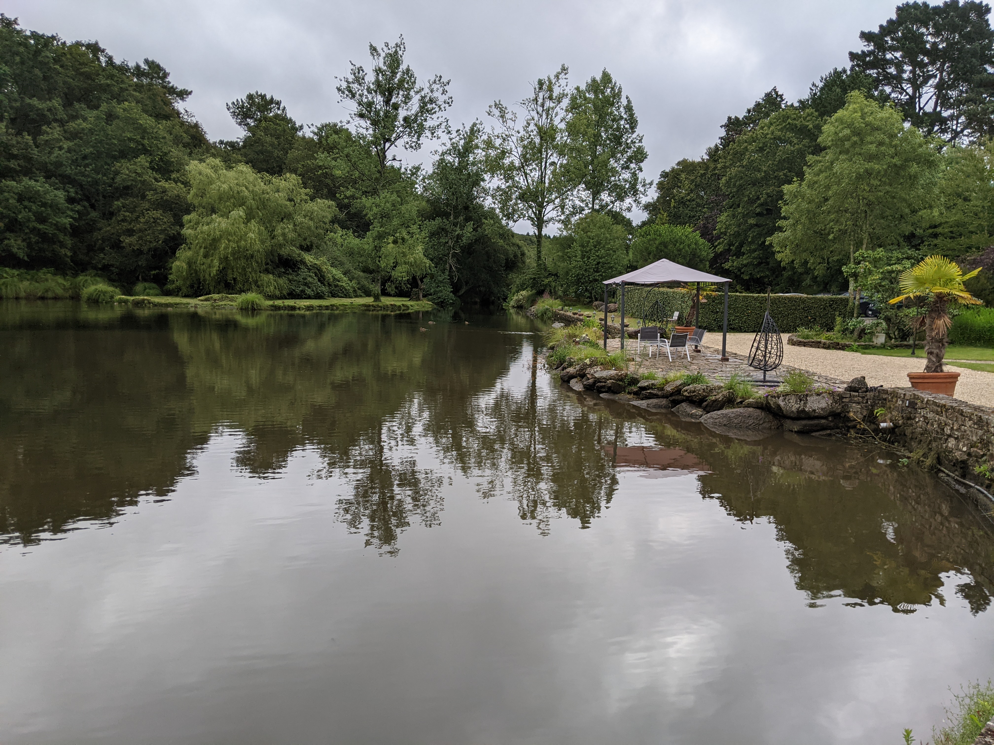 Hôtel de charme au calme au bord d’un lac et d’une rivière L’endroit est réellement charmant. Le calme est agréable. Cet endroit fait office de lieu de retraite agréable. Pas de réseau gsm ou 4G mais un réseau wifi tout de même. Bon restaurant dans un joli cadre. Piscine et spa. La chambre que nous avions était spacieuse et agréable avec une petite terrasse vue sur lac. Je recommande Quimperle a 11min en voiture, pont aven à 15 min