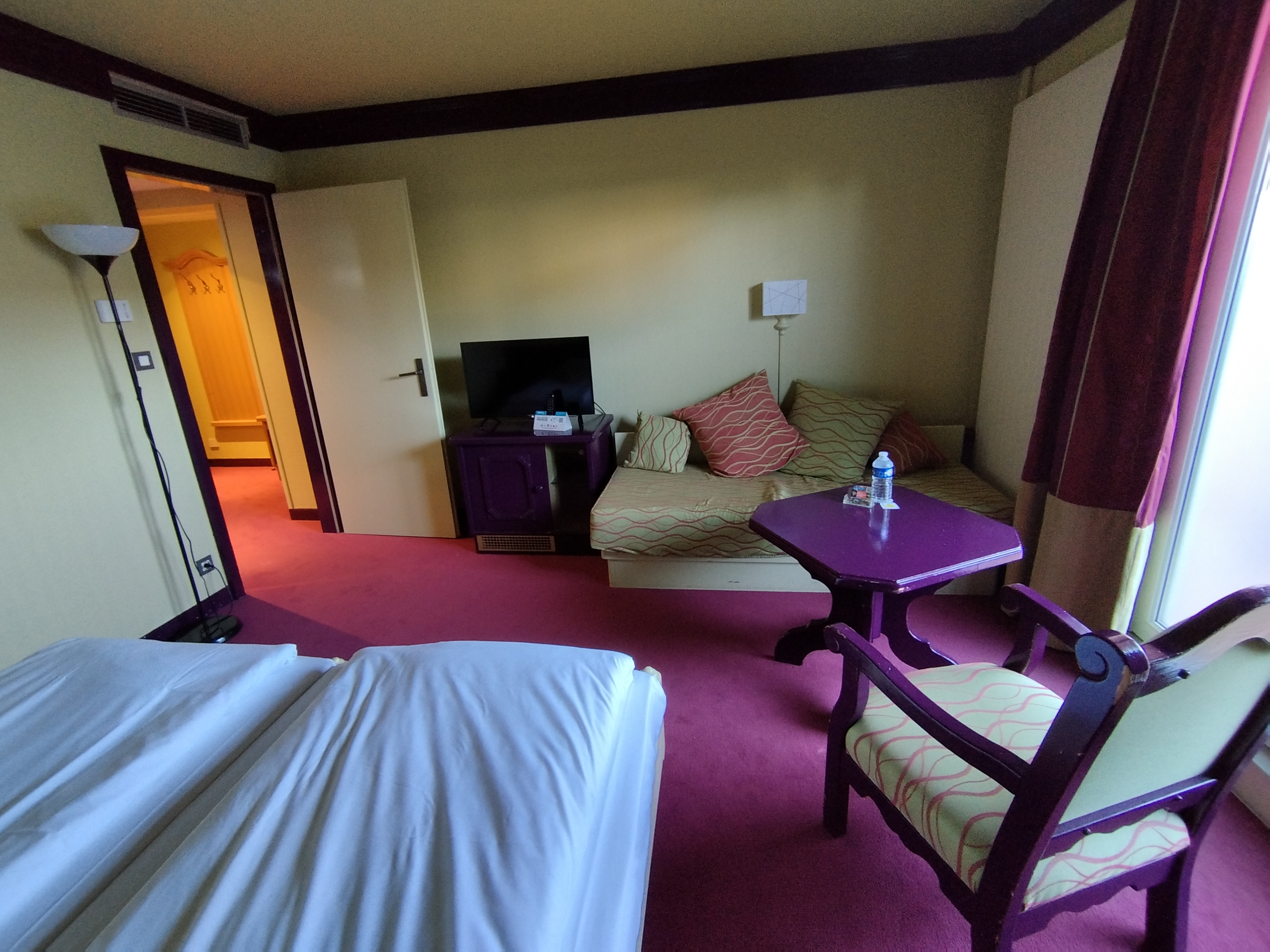 Chambre spacieuse, propre, lit excellent. Pour un hôtel 3 étoiles je m'attendais aussi à un frigo dans la chambre. La salle de bain où l'on se douche sans porte (avec un rideau). Cependant, l'hôtel manque de chaleur et cela ne nous a pas donné envie d'y passer une deuxième nuit... le petit déjeuner était bon mais la chaleur manquait également dans cette salle à manger.