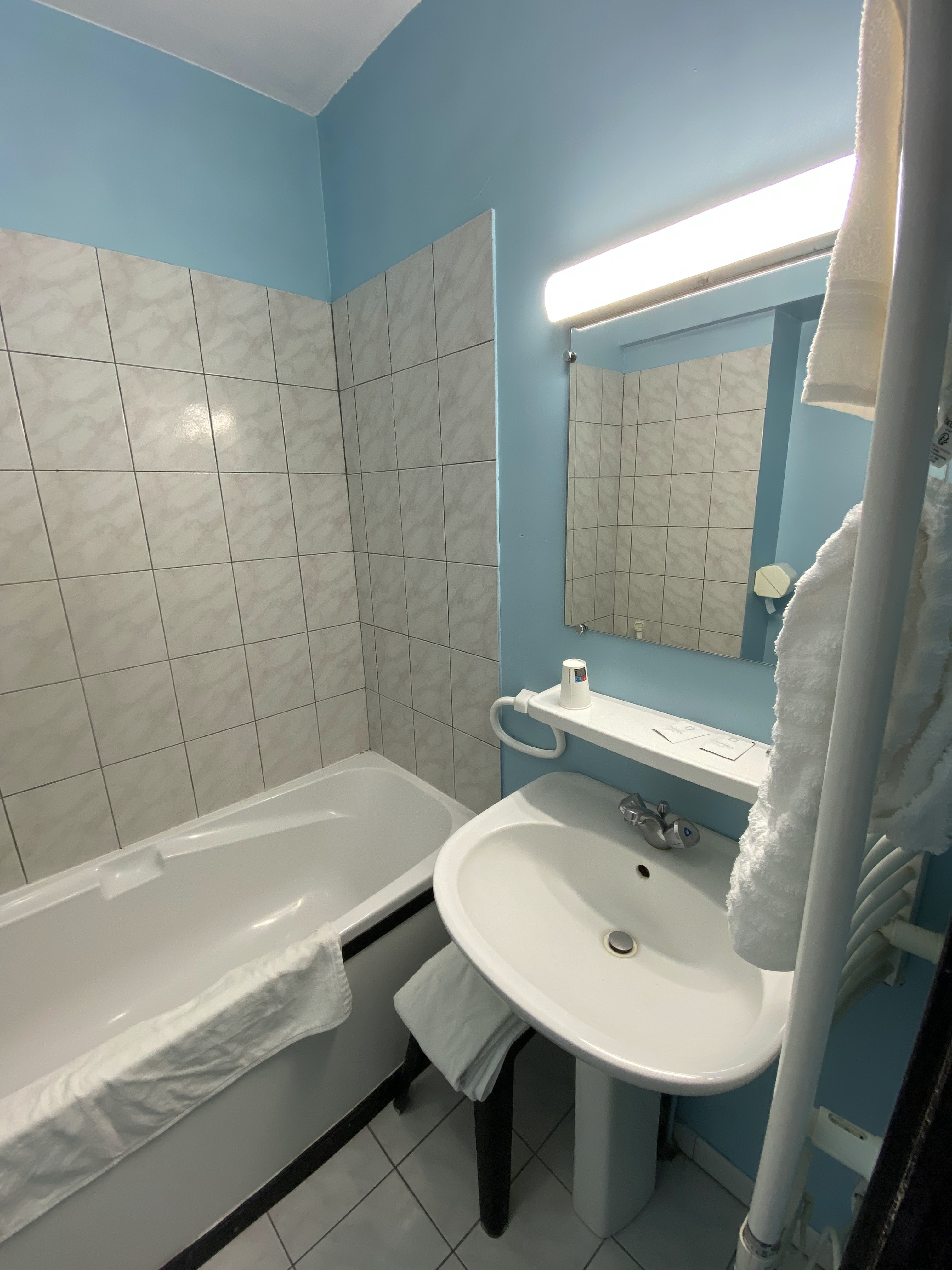 Accueil des propriétaires limite du correct, mais personnel très courtois. Les petits budgets devraient avoir droit au même respect que les gros budgets. La chambre propre , literie ancienne, Douche très exiguë, porte de douche qui fuit, lavabo fêlé avec fuite. Bruyant le matin. L'ensemble beaucoup trop cher pour le service rendu.