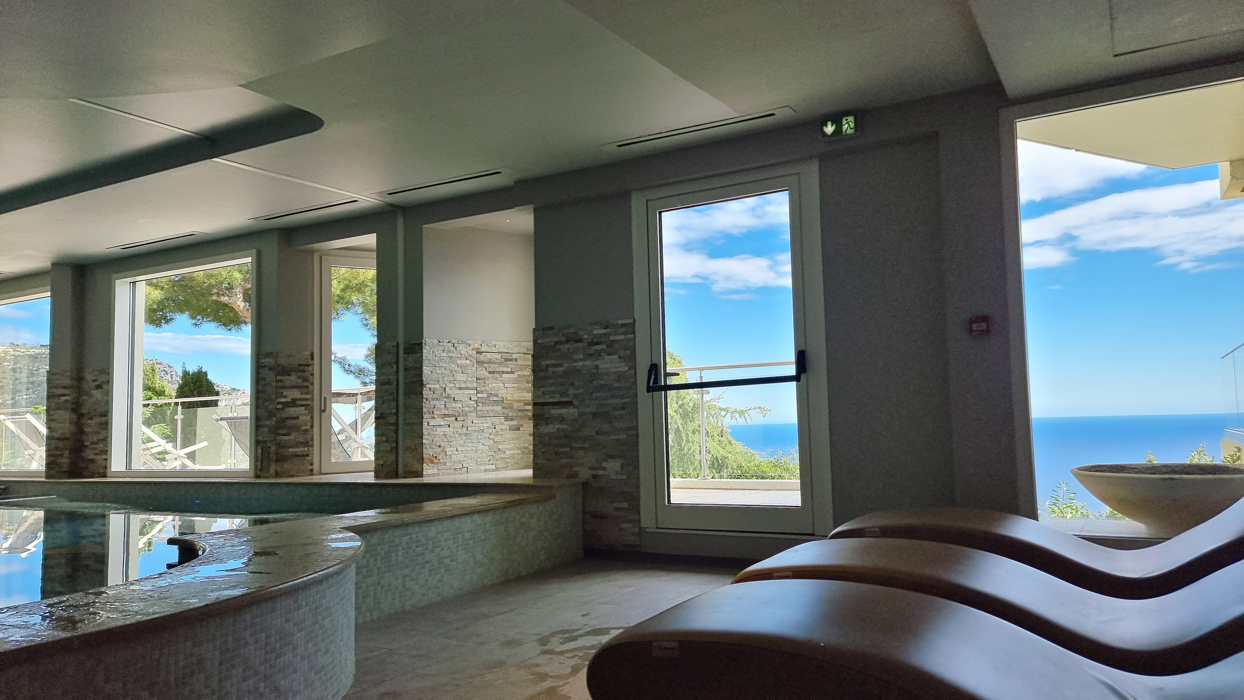 Un séjour proche de la perfection: Un personnel accueillant et sympathique, une vue extraordinaire de Menton à l'Estérel, un Spa exceptionnel avec 2 hammams, 2 sauna (un avec 3 écrans montrant une baie paradisiaque avec bruit des vagues), 3 douches sensorielles, une salle de relaxation avec mur de sel et un immense jacuzzi avec vue mer et 6 sortes de jets. Tout est tellement propre qu'il nous a semblé neuf . Seul petit bémol, le bruit de la climatisation de la chambre un peu trop fort.