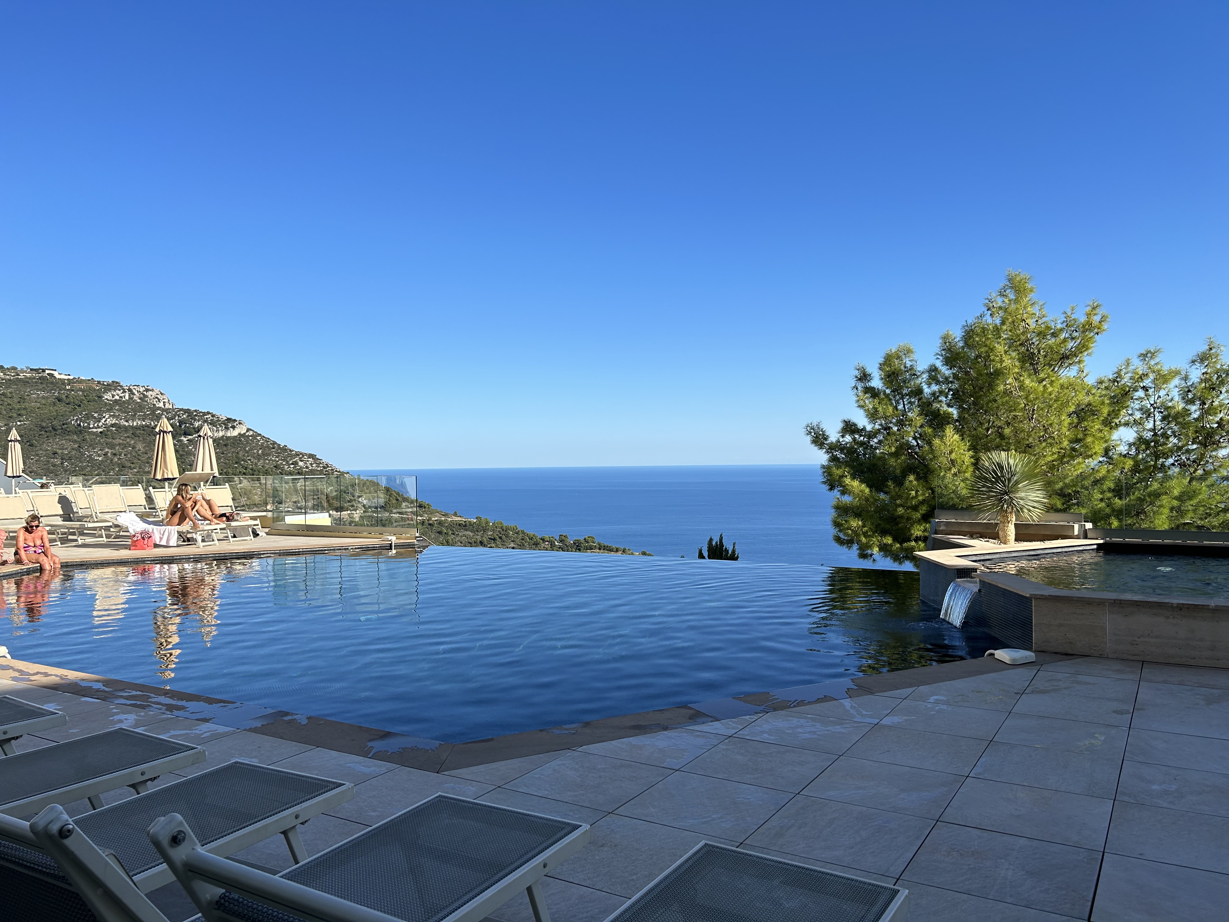 Cadre magnifique ! La vue mer est incroyable. Perché sur les hauteurs d'Eze, l'hôtel des terrasses sera vous dépayser. Le SPA est également une des cartes maitresses de cet établissement, notamment avec son parcours sensorielle proposant plusieurs installations revigorantes. Le restaurant, à un prix très raisonnable pour le cadre, est d'un très bon niveau. Je vous invite vivement à faire un saut dans la piscine, les bras ballants sur son debord en contemplant la vue. C'est très songeur. On ne regrettera que la chambre qui manque un poil de standing et de personnalité, même si tous les standards y sont proposés.
