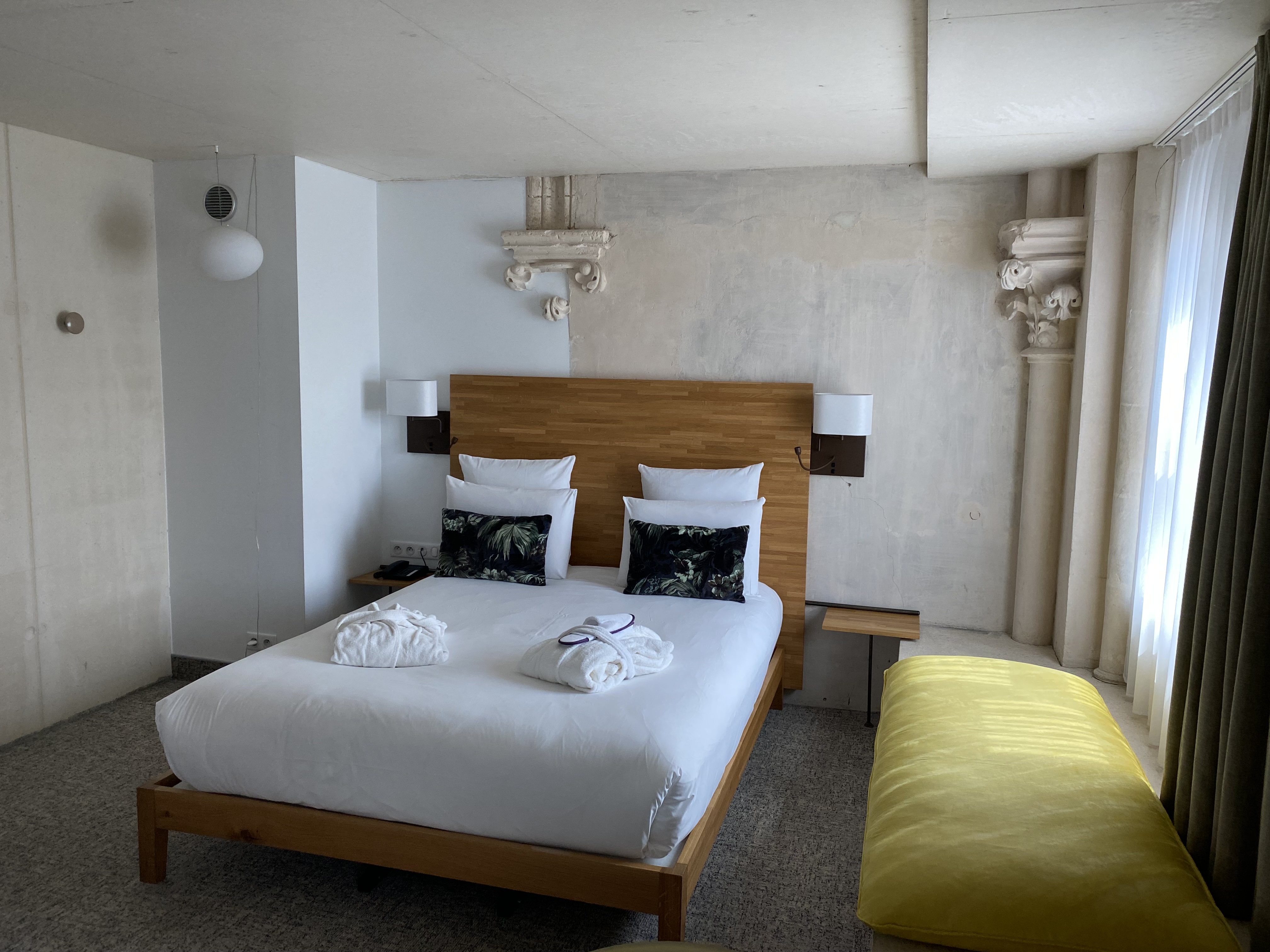 Insolite.hotel dans une ancienne eglise.passe les beaux escaliers.chambre bien faites mais plutôt blocaus. Ns permettant d'oublier le béton. Magnifique établissement.