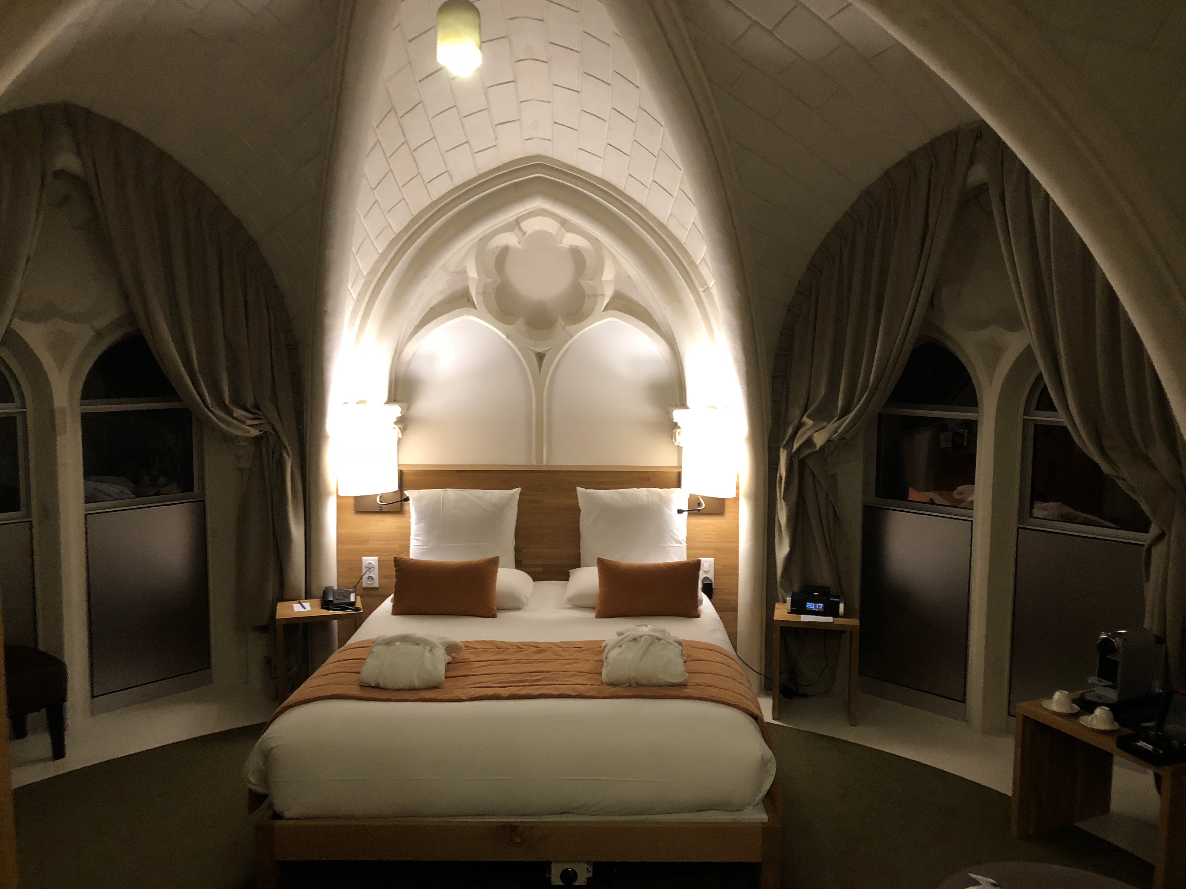 Un Hôtel magnifique, niché dans une ancienne cathédrale ou église. J'ai eu la chance de séjourner dans la chambre sous la voûte qui est une chambre duplex. Tout y est propre le petit déjeuner est bon. Le restaurant est très bon et l équipe est sympa.