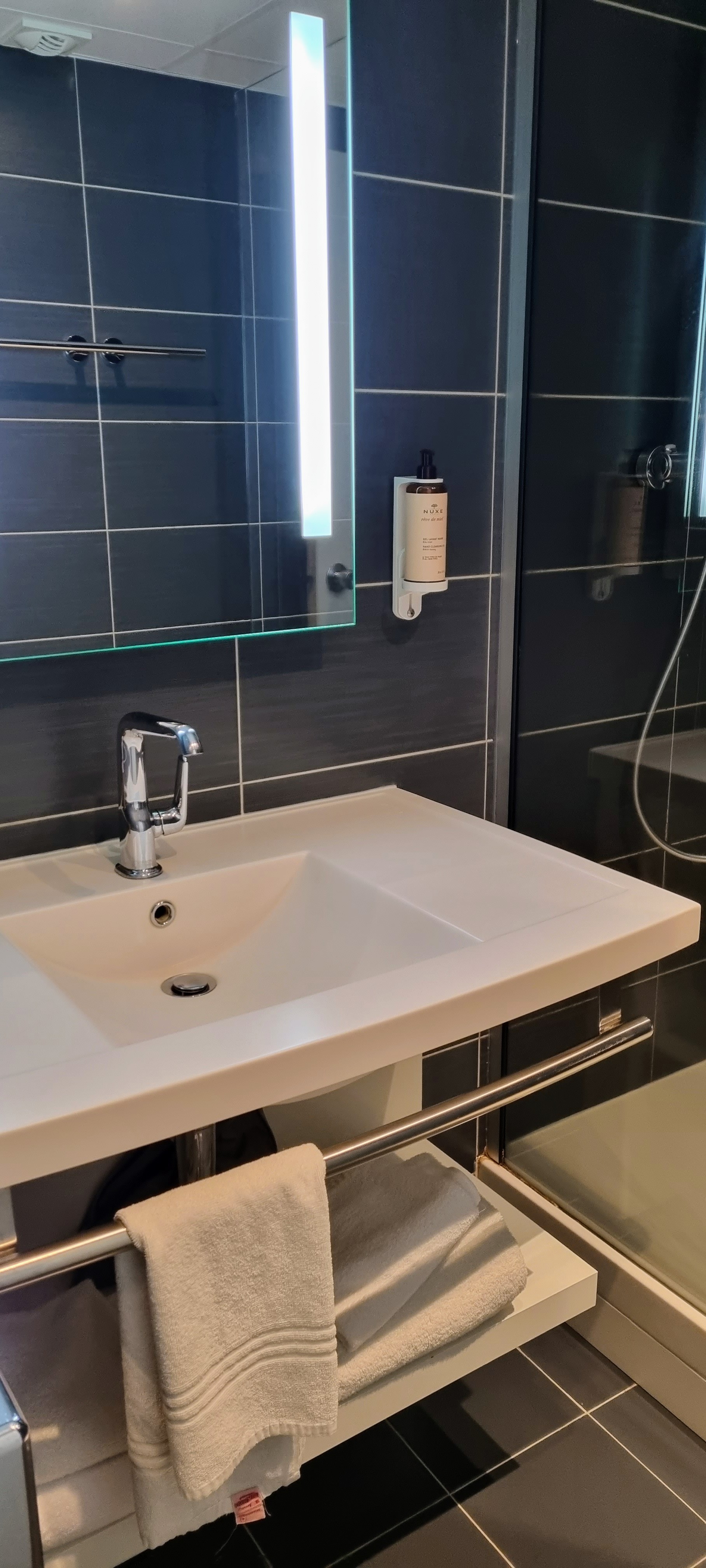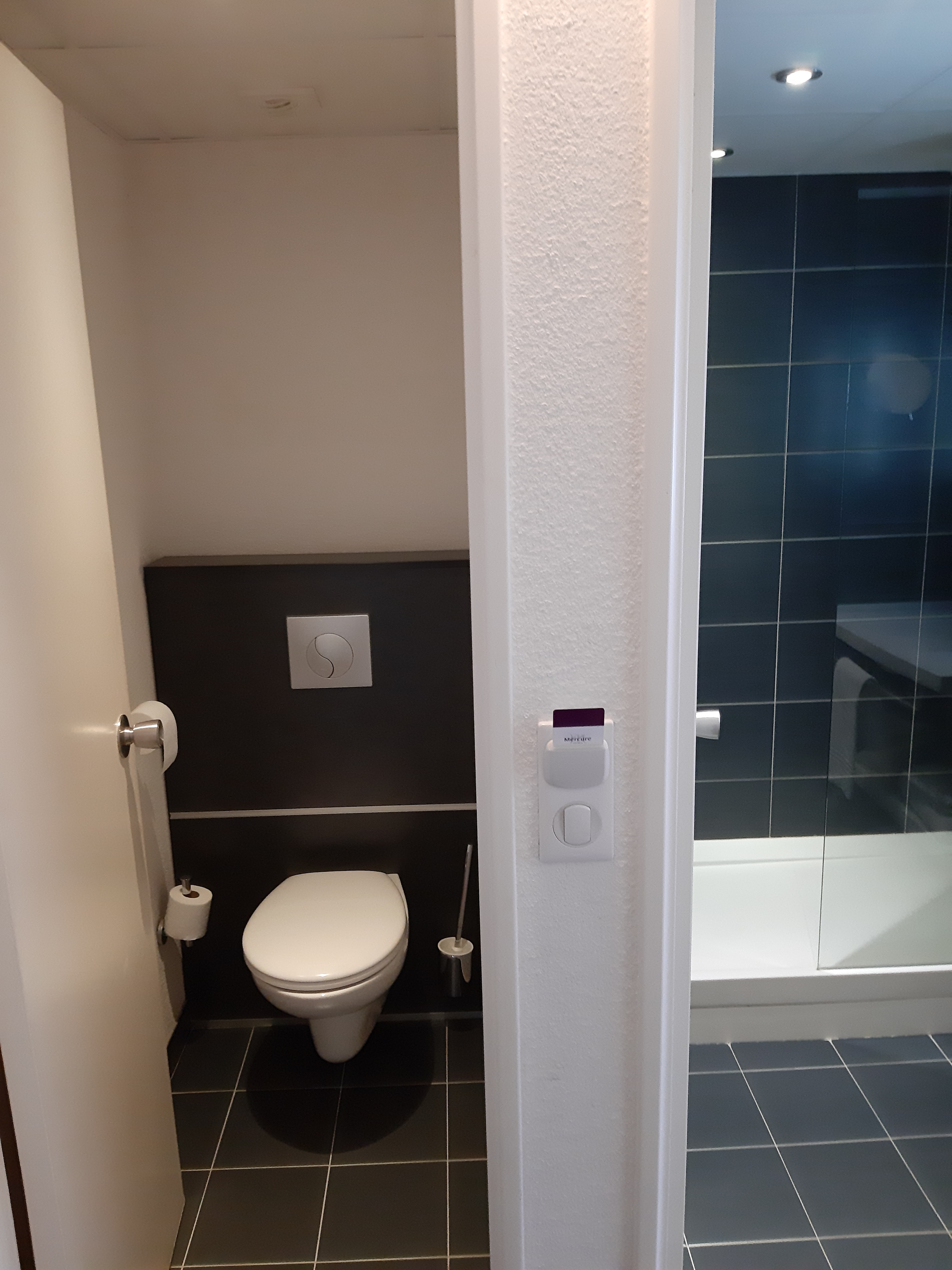 Encore un hôtel du groupe Accord vieillissant... Heureusement le personnel était jeune et accueillant. La chambre pour 4 était mal agencée et vraiment petite. Salle de bain minuscule mais la douche était bien. La recharge électrique pour les voitures est certes présente, mais à quel prix (2 fois le prix du carburant pour ma voiture hybride) !!! Petit-déjeuner correct mais sans plus.