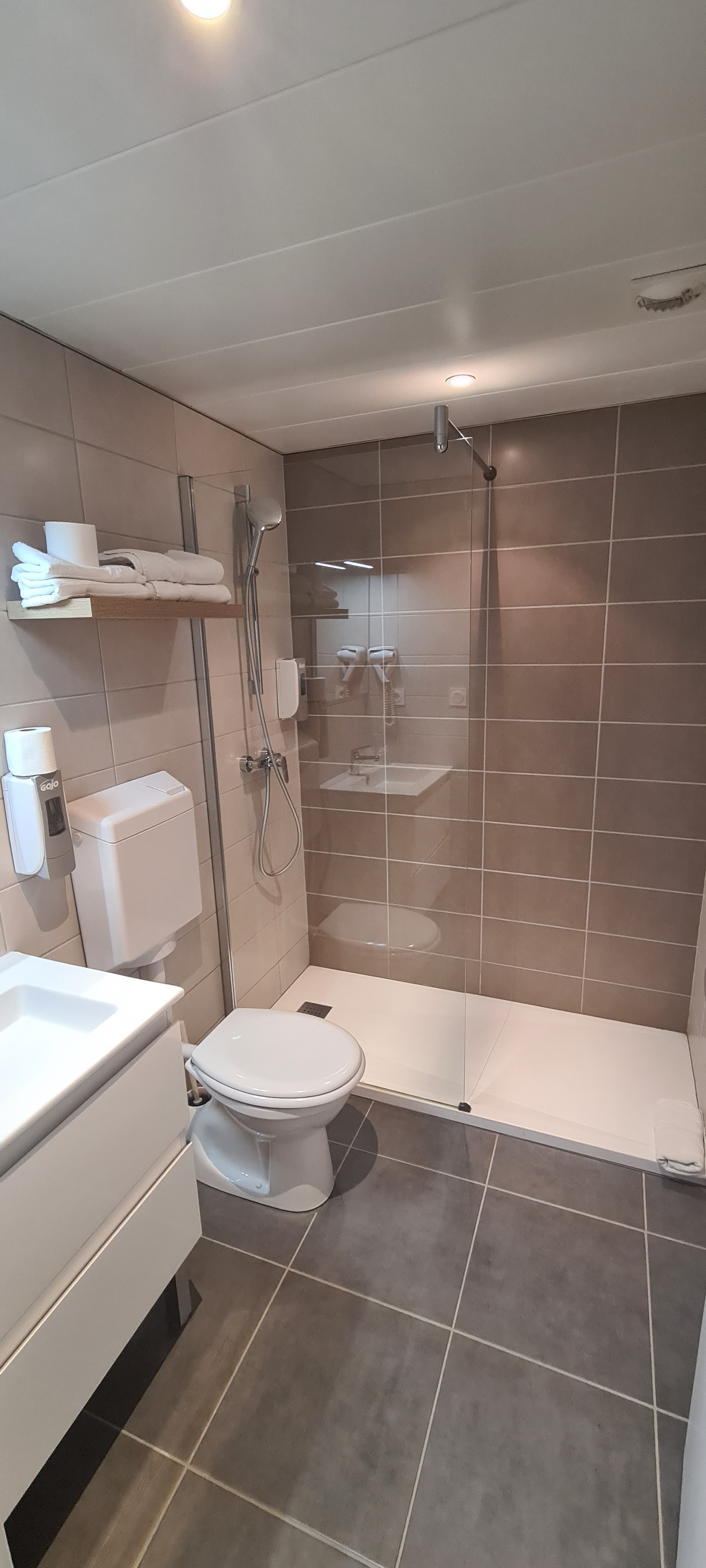 Salle de bain bain un peu étroite. Accueil chaleureux et bonne cuisine familiale.