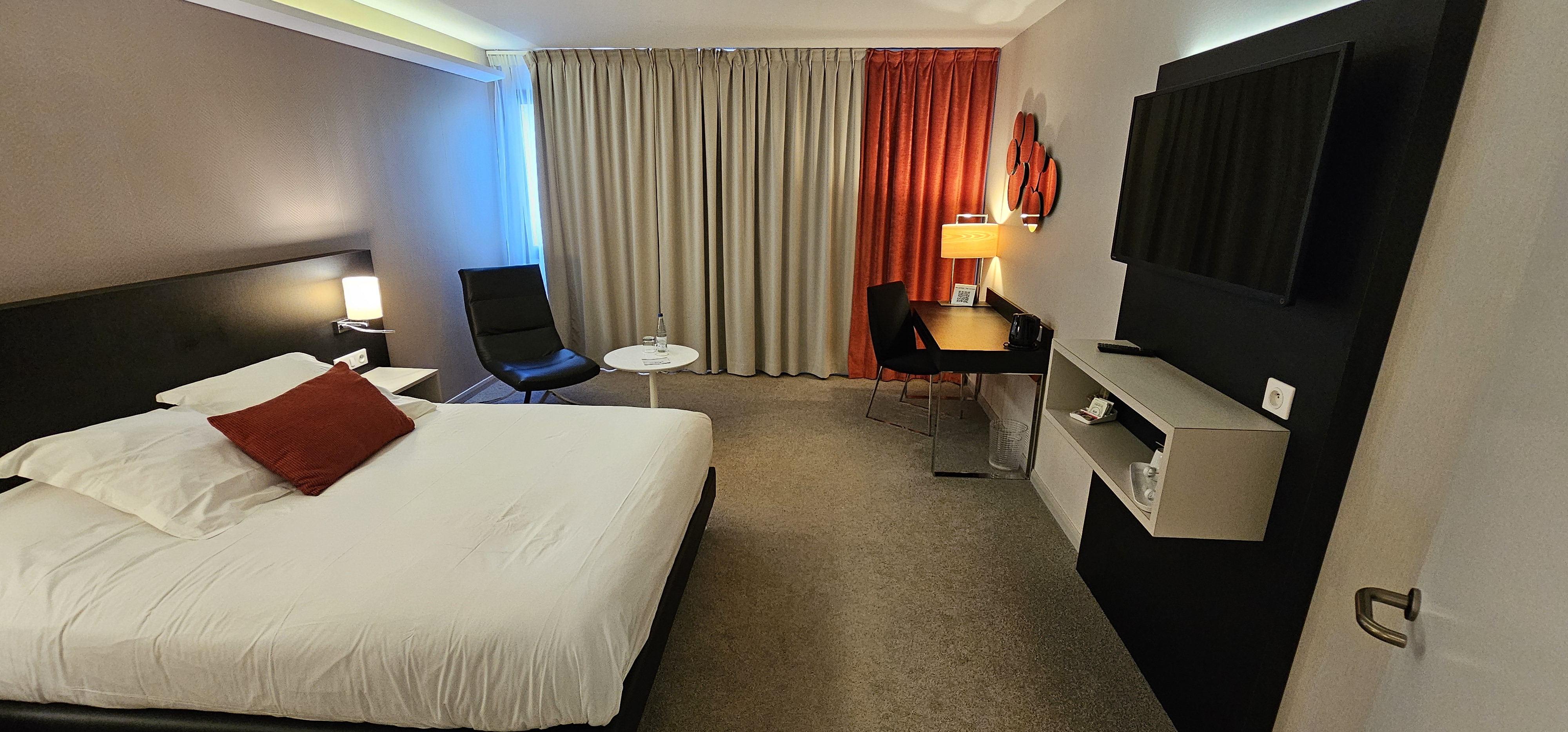 J avais initialement mis 5 étoiles mais j ai révisé mon avis. Pourquoi, simplement car les prix fluctuent trop. La première fois j avais eu un très bon tarif ce qui donnait un rapport qualité prix top, et la seconde fois, prix bcp plus élevé et j ai testé leur resto qui m’a déçu. Cela reste tout de même un bel hôtel avec de grandes chambres agréables. Si vous avez un rdv dans la zone alors c est un très bon choix.