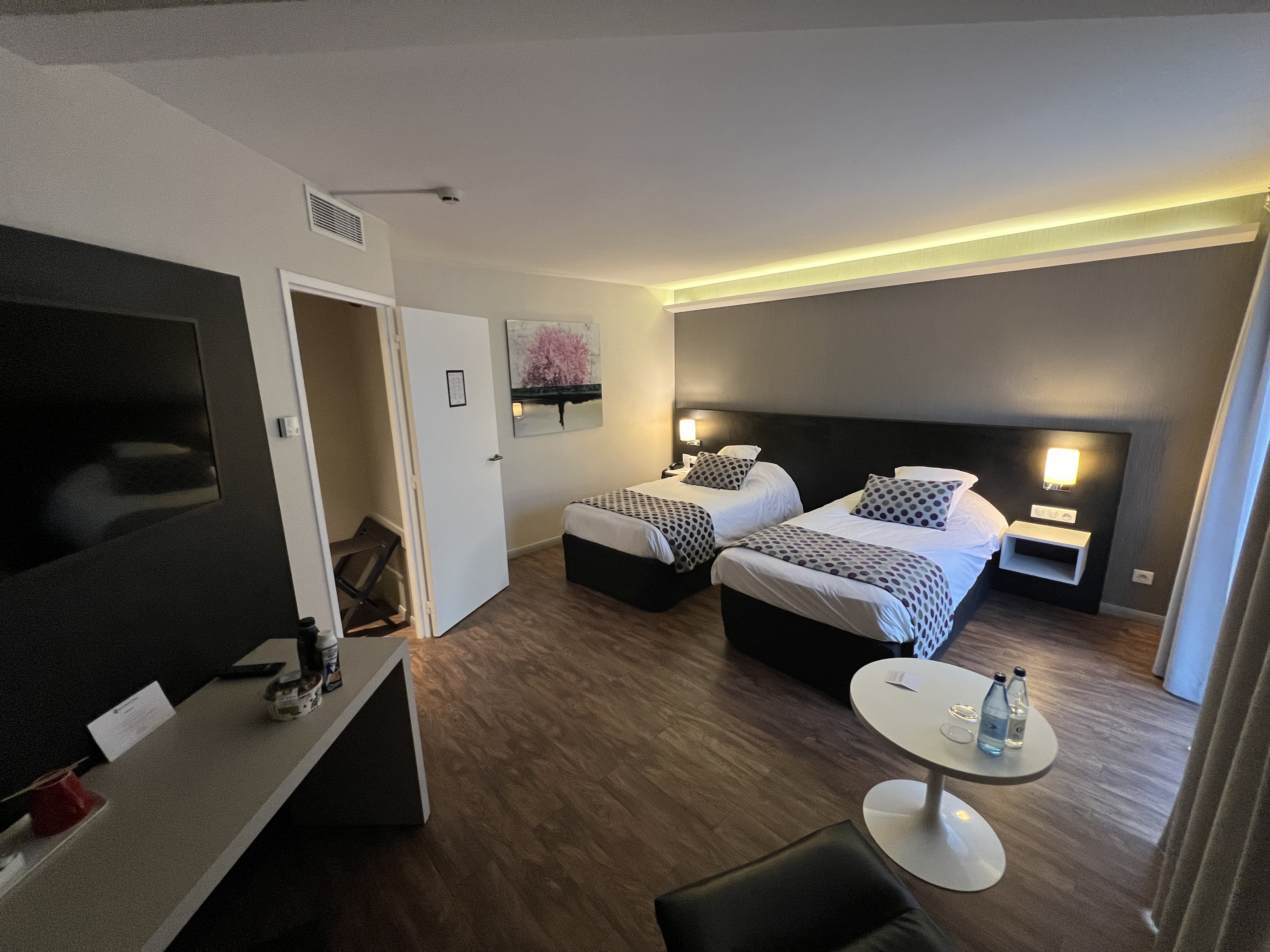 Chambre très agréable, propre, avec touts les petits plus qui font plaisir, un espace dressing, salle de bain WC, bien séparer de la chambre, et une bonne literie. Un lit parapluie avec un vrais matelas pour les bébés, hôtel et alentours calme, facile a trouver et proche de pas mal de restaurants. Personnelle très sympathique et compréhensif. Petit point négatif le petit déjeuner a 16€ par personne qui pour moi était vraiment minimaliste, manque de fruit frais, brioche, pain au lait, jus de fruit, je m'attendais a plus et mieux a ce niveau.
