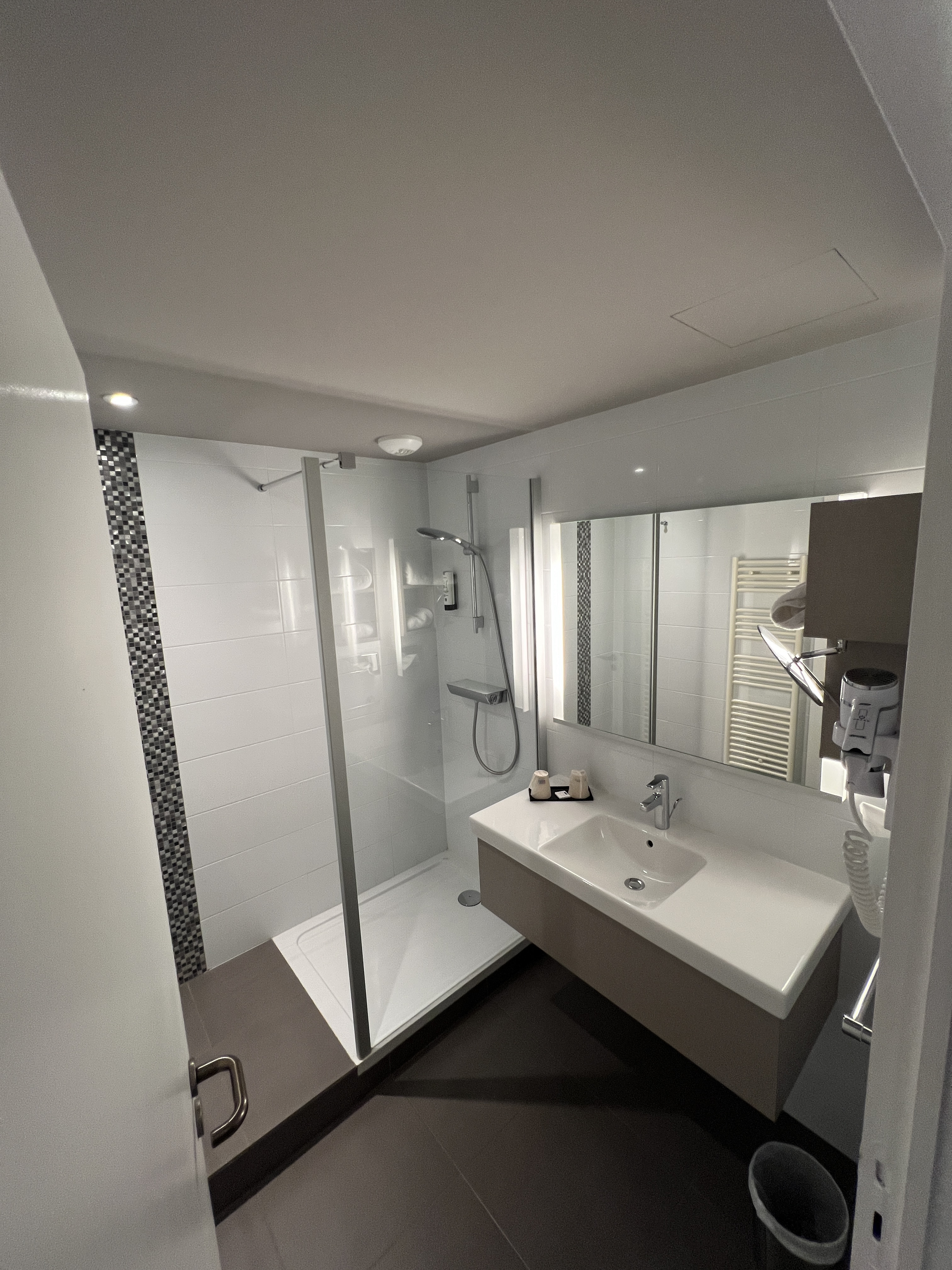 Pas mal mais...on m'a donné une chambre pour personne à mobilité réduite sans me demander mon accord...du coup les interrupteurs à moins d'1 m du sol, barre de douche pas haut, sol carrelé dans toute la chambre (froid en hiver)...bref pas top. De plus, pas de seche cheveux et un petit déjeuner express (un jus d'orange et un petit pain) qu'on a voulu me facturer 16 €...pour finir, le personnel à l'acceuil pas très sympa (pas tous heuresement)...