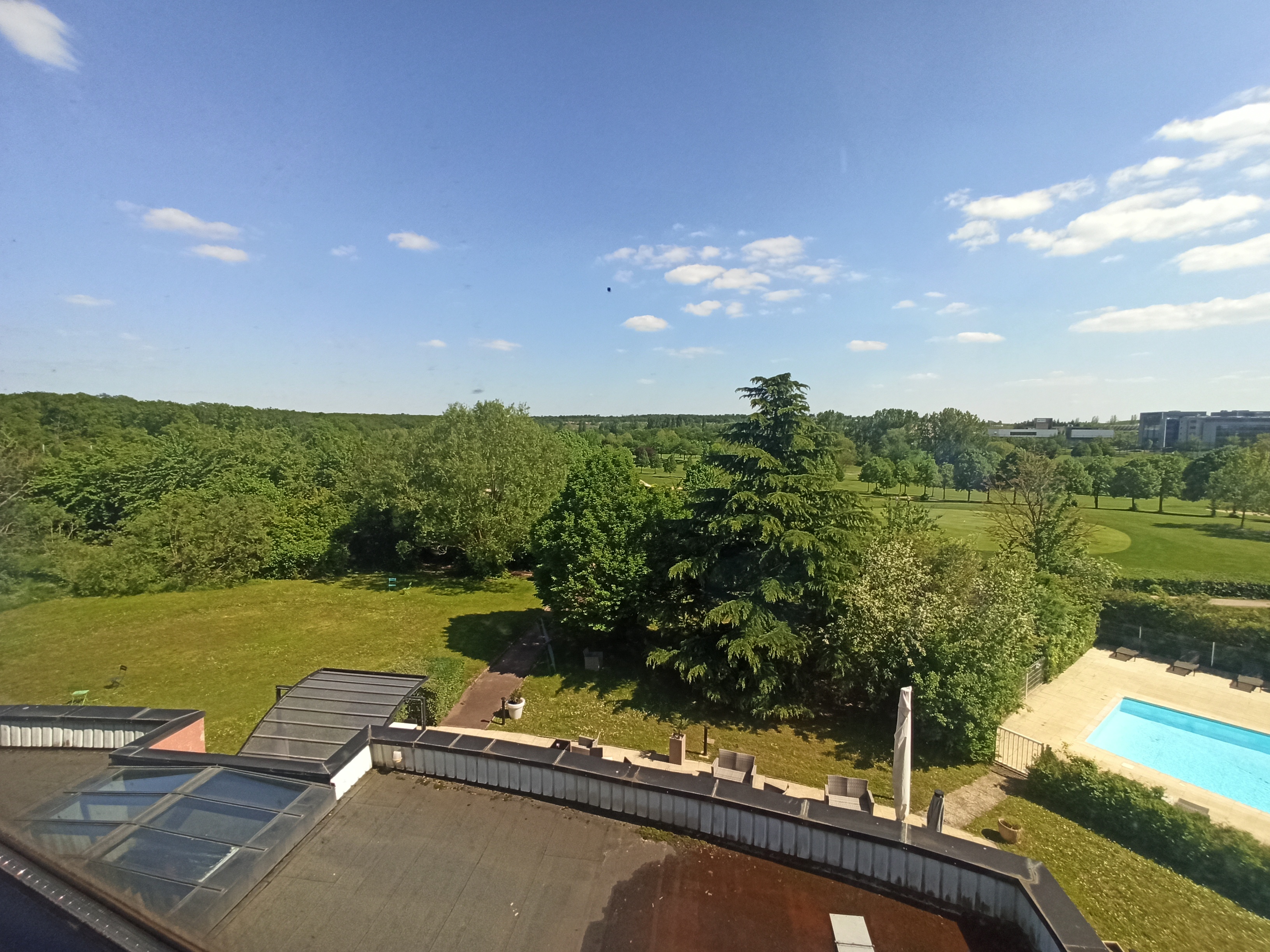 1ere expérience avec golf by ratio.Très décevant et nous n y retournerons plus. Par contre, personnel agréable. Chambre, côté golf, au 1er étage avec vue sur une plate-forme et ventilateurs bruyants par moment. Moquette avec taches, vitres sales, un grand essuie main pour deux le 1er jour, un mini savon par jour,