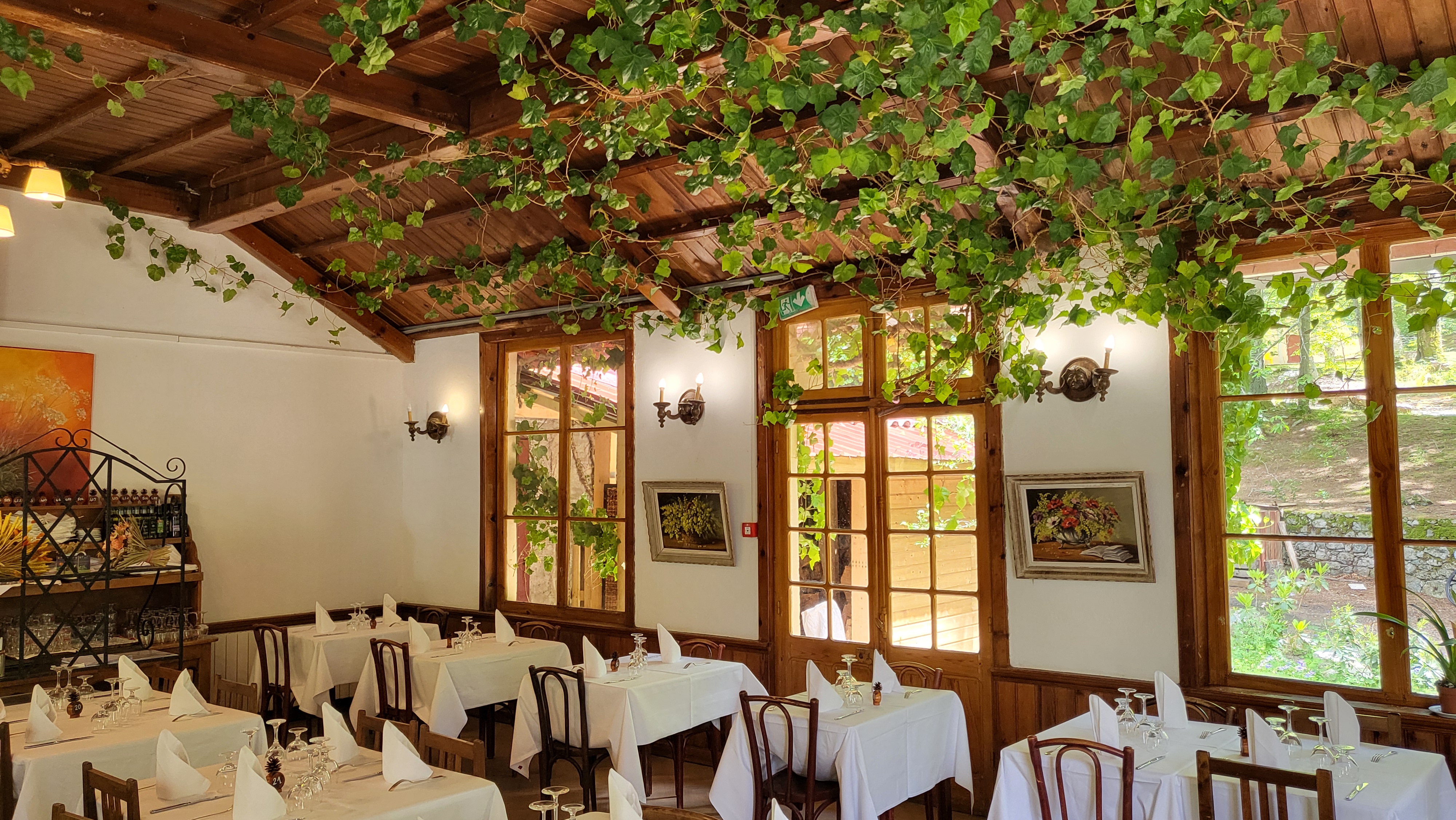 Un joyau caché, avec un charme d'antan et une excellente cuisine. La truite est excellente. Lorsque vous regardez le menu, vous pensez peut-être que les prix sont un peu plus élevés que ce à quoi vous vous attendez, mais ensuite... vous voyez les portions ! Très généreux et, bien que simple, plein de saveurs. Bon choix de vins locaux à des prix raisonnables. Lorsque vous en aurez assez de rôtir sur la côte, montez dans les montagnes fraîches et détendez-vous ici. Oh, bon service aussi...