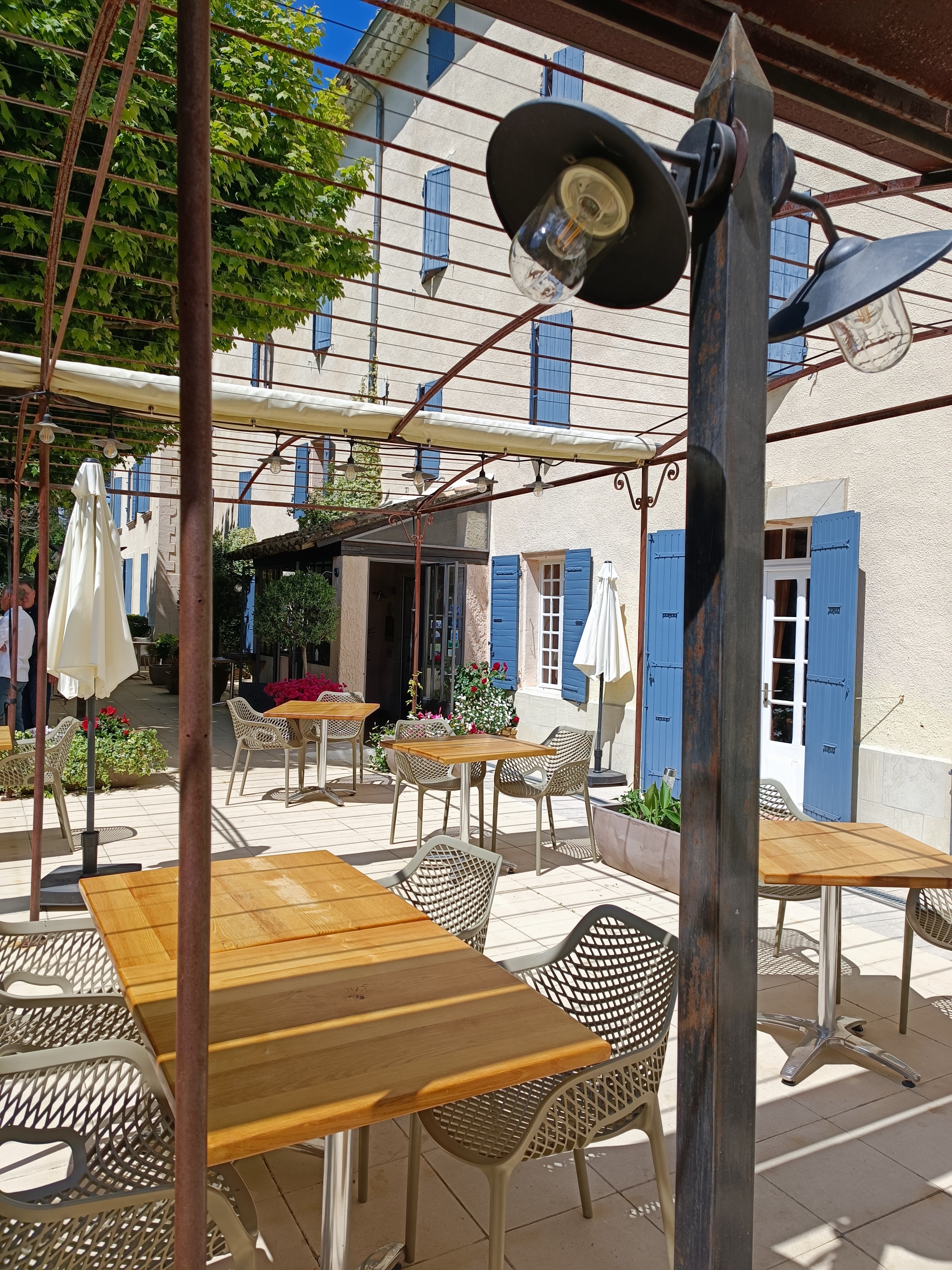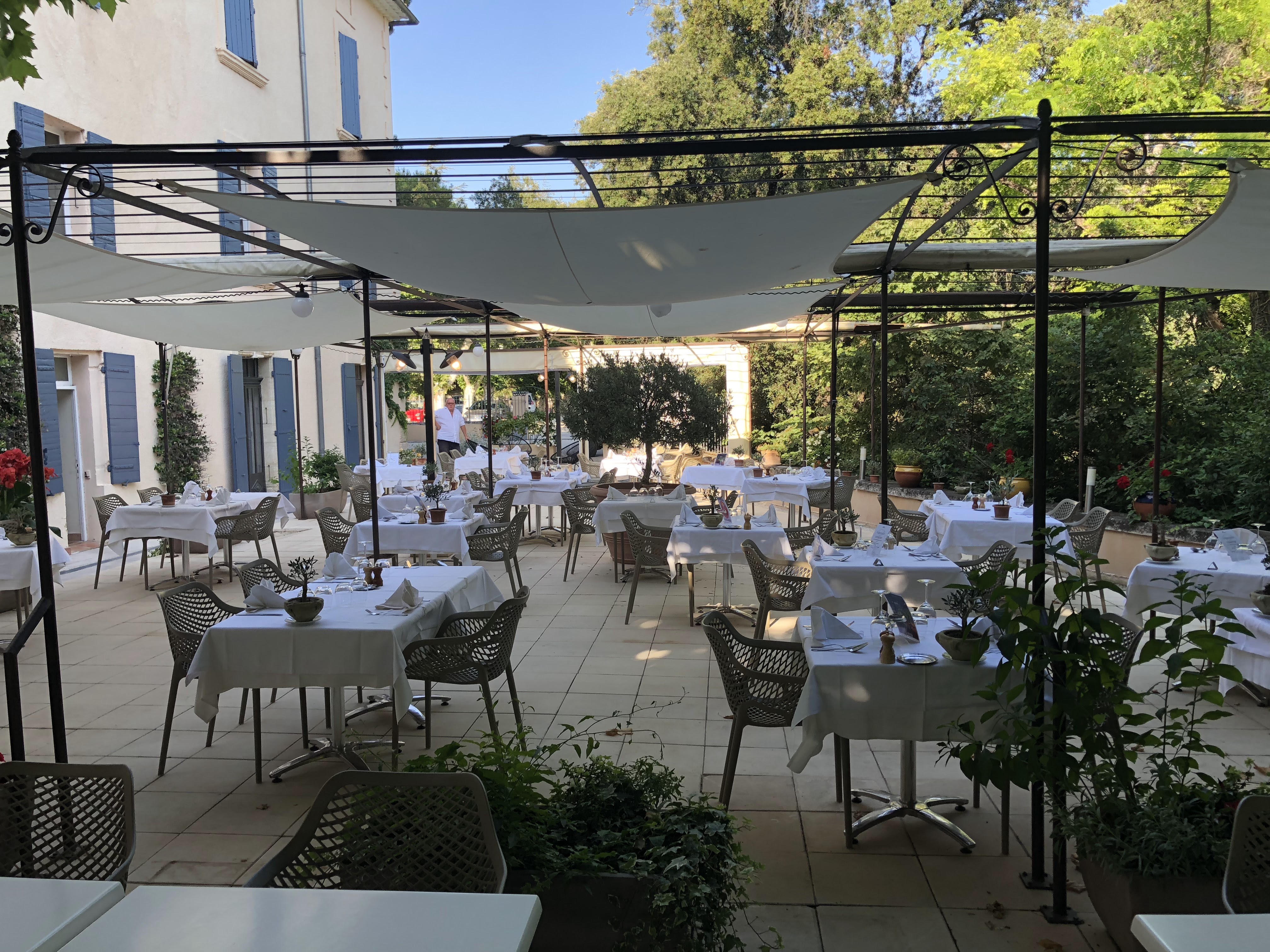 Il existe des lieux où l’on se sent naturellent bien. Souvent les hommes y ont construit des lieux de culte, ici c’est une ancienne bâtisse provençale qui est devenue un hôtel restaurant. La cuisine de qualité, la carte des vins qui propose des produits de qualité à des prix tout à fait abordables, une terrasse agréablement ombragée par des platanes, le personnel chaleureux, attentif et professionnel tout en restant discret en font un endroit idéal pour une étape ou pour un séjour. Cela fait maintenant 29 ans que nous fréquentons l’établissement. Nous y revoyons une clientèle fidèle à la recherche de plénitude et de bien-être, preuve de la qualité des prestations apportées. Le seul regret est celui du départ à la fin du séjour ! Merci et bravo à Marc, Thomas, Arnaud et toute leur équipe. Une entreprise familiale comme il faudrait plus.