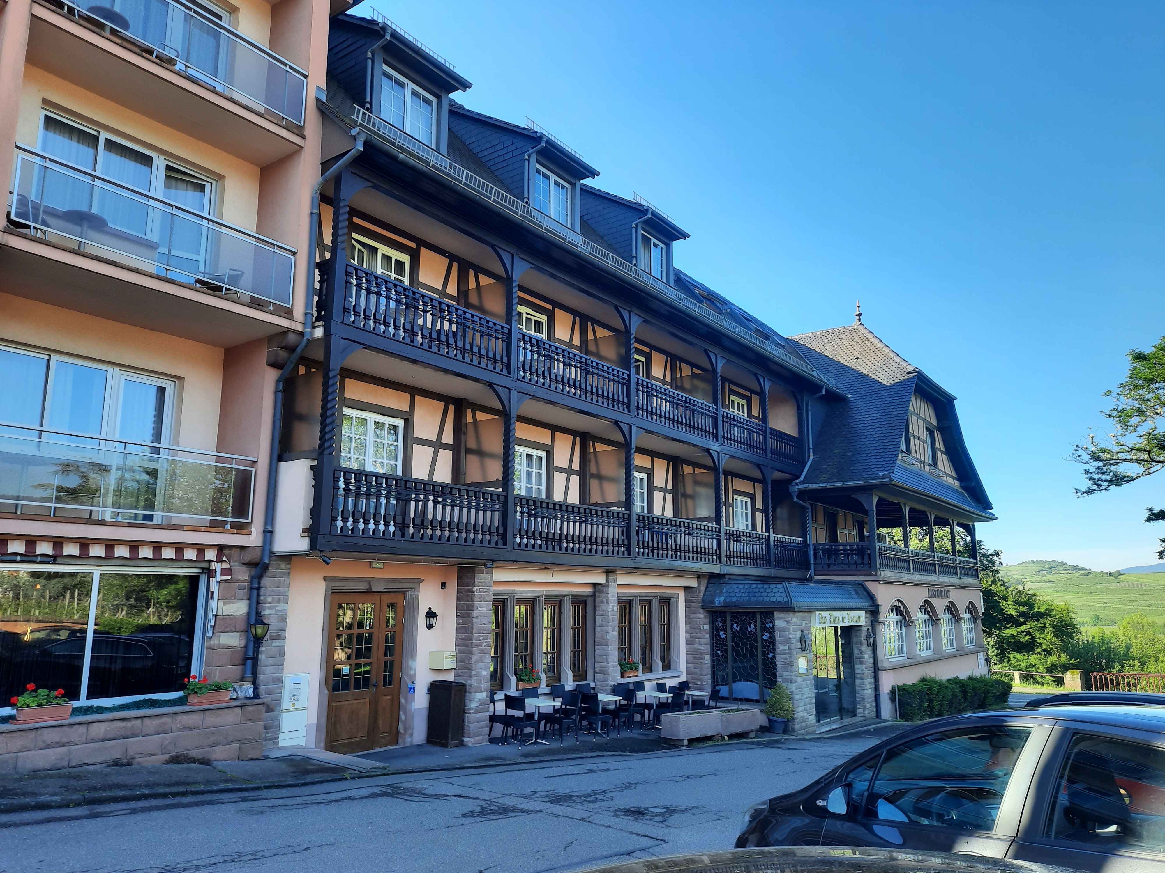 Au cœur des vignobles et de tous les beaux villages d'Alsace. Excellent hôtel. On y mange très bien ! Nous y sommes déjà venus et nous reviendrons encore !