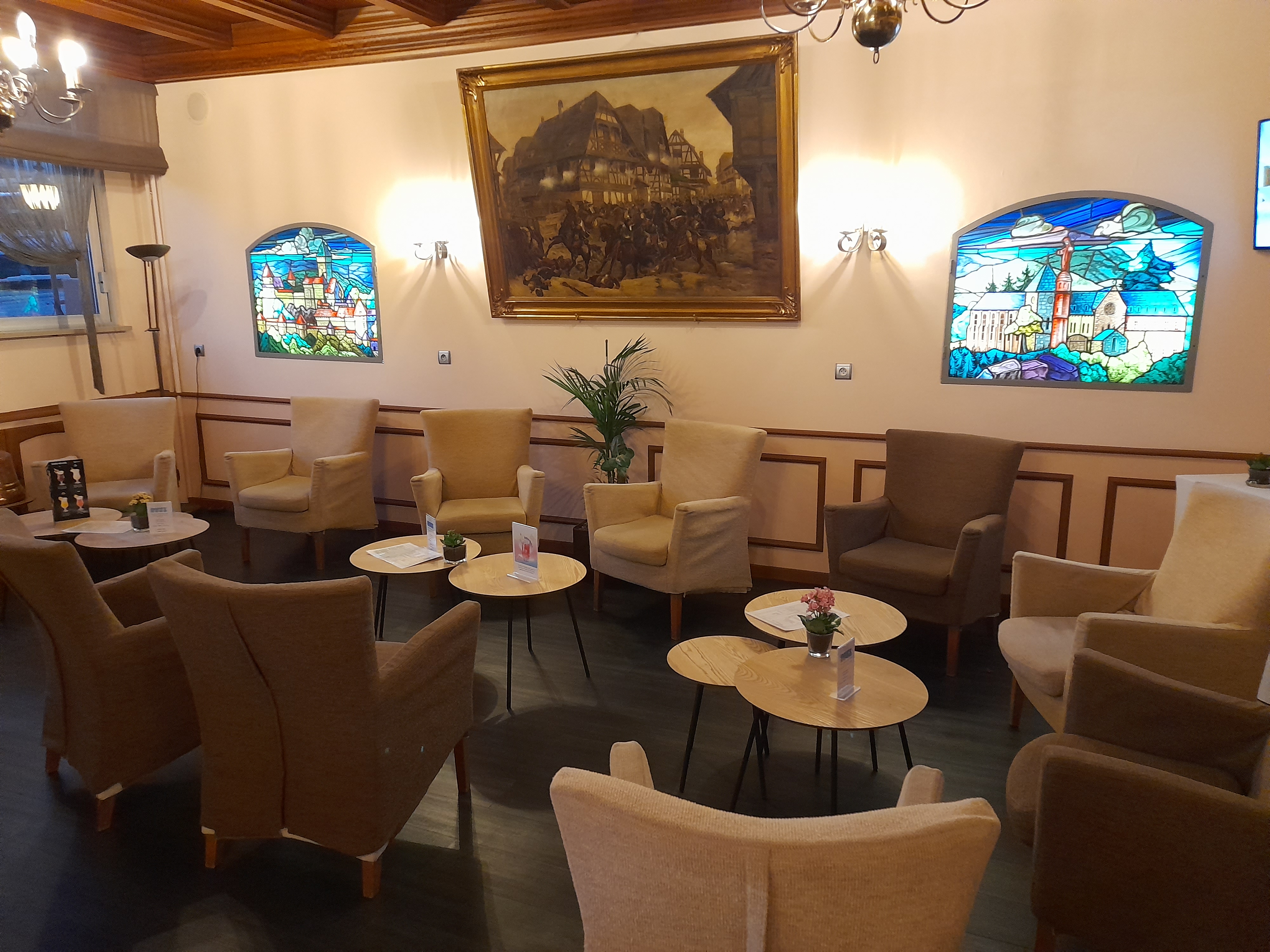 Bel hôtel de passage. Deco et mobilier d'une autre époque mais literie confortable. Superbe vue du balcon de la chambre sur le château. Retiré juste une étoile pour le petit petit-déjeuner. 99% de sucré, choix limité, ... peut-être est-ce dû aux restrictions sanitaires. N'hésitez pas à vous y arrêter. Nous n'avons pas mangé au restaurant
