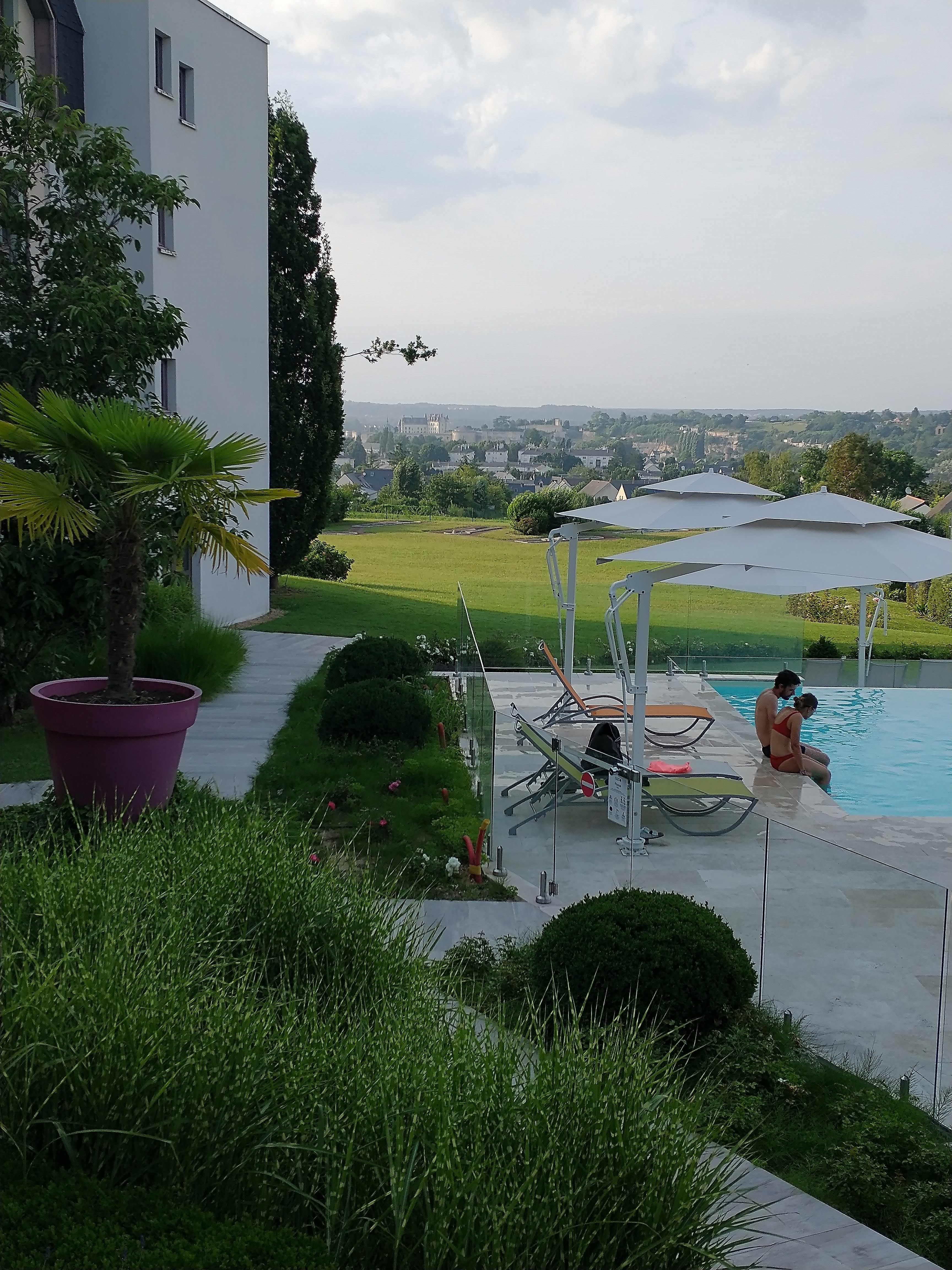 Avec la piscine et les serviettes associées, c'est très sympa. Belle vue sur Amboise et son château. Petit déjeuner un peu cher peut-être surtout quand on a juste une petite faim. Sinon rien à redire.