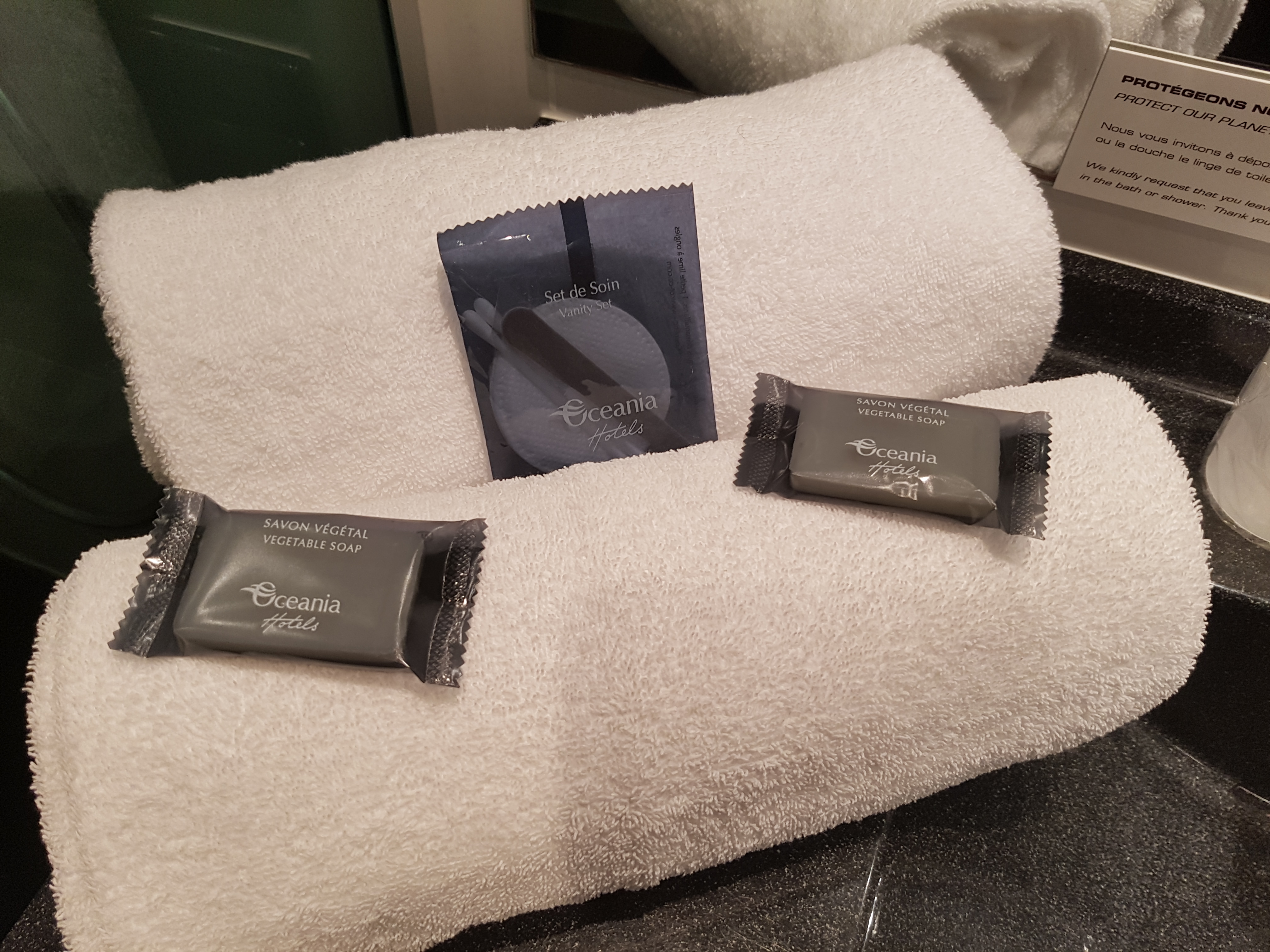 De belles prestations pour cet hôtel ! Nous avons eu un excellent accueil; l'équipe est disponible, très réactive et toujours avec le sourire. Nous avons apprécié notre week-end en famille avec un petit bébé de 5 mois ! Un large choix au petit-déj avec des spécialités régionales (madeleines et gâteau breton délicieux) puis du pain bio, laitages, gamme variée de confitures, boissons, fruits frais et secs et charcuteries, etc... Notre chambre (suite) était bien agencée, confort bébé de surcroît. Le seul point négatif: matelas du clic-clac un peu dur et bruyant mais dans l'autre chambre attenante: super ! Nous espérons y retourner un jour : ) Bonne continuation aux dames d'Océania et au monsieur du service petit-déj !!!!