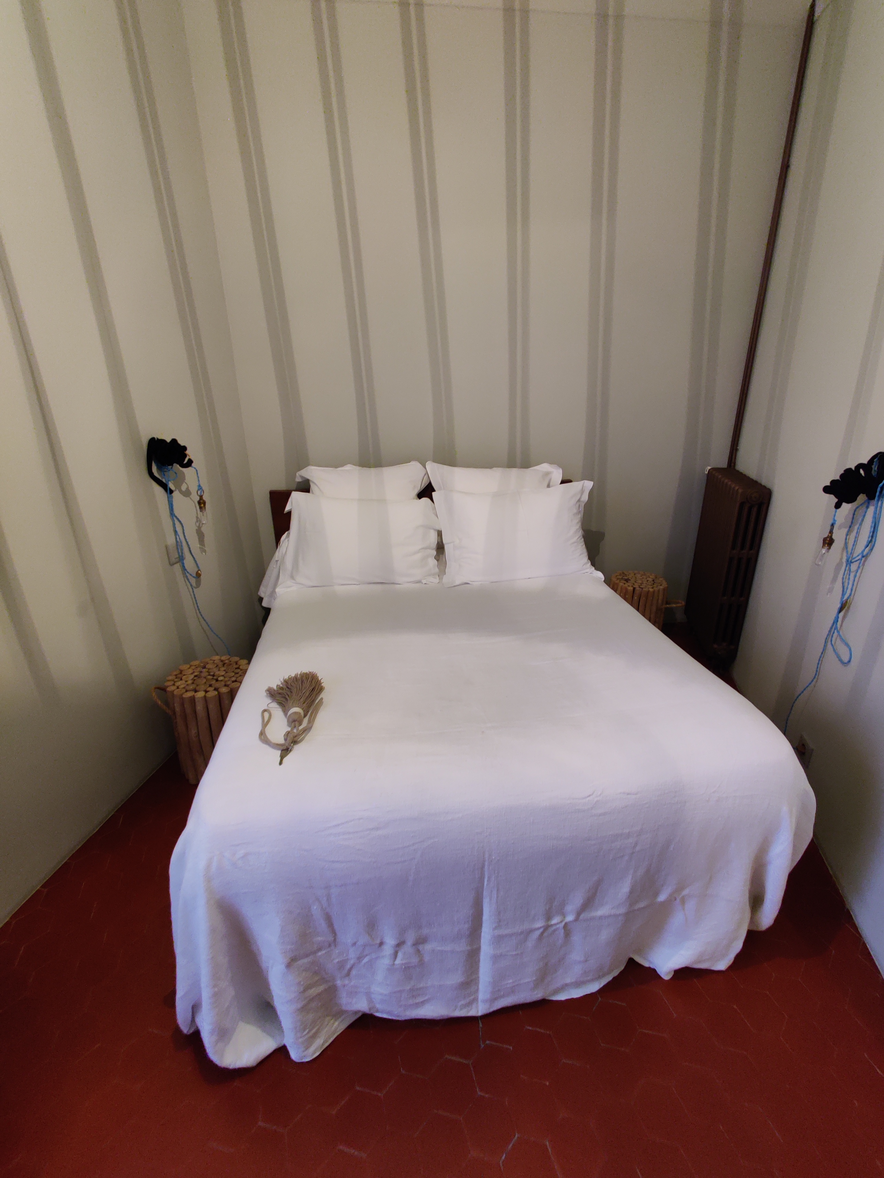 Merci pour ce bon séjour dans votre hôtel La chambre était très agréable déco sobre et de bon goût bonne literie Ambiance apesante magnifique vue sur la campagne très calme Salle de bain très confortable La tuyauterie de la douche à l'italienne est une œuvre d'art à découvrir Petit déjeuner dans le jardin gourmand avec de bons produits Tout était parfait du check in au check out