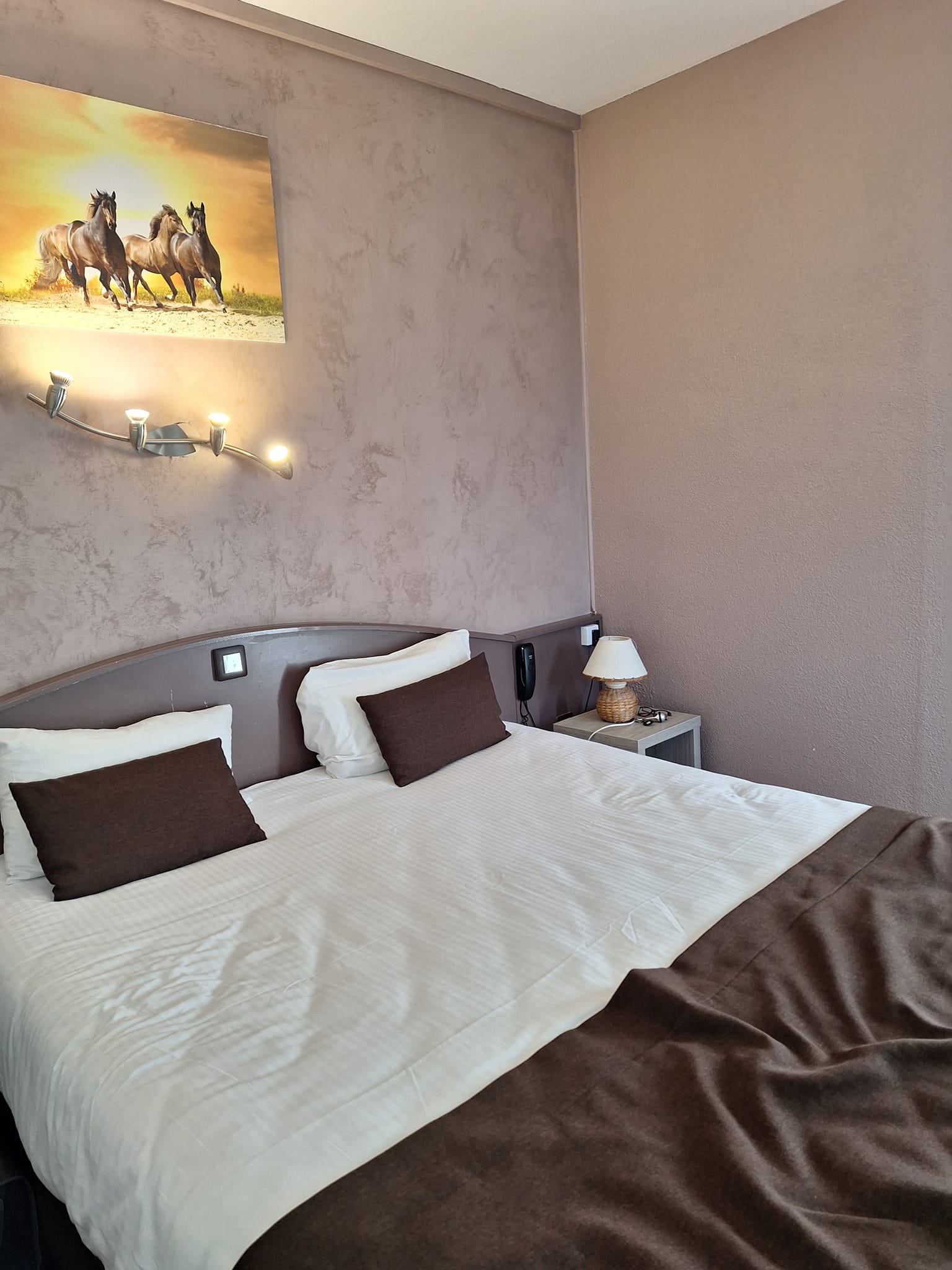 Personnel agréable et disponible. Établissement propre et bien situé... Le petit plus ? La bouteille de rosée offerte dans la chambre à notre arrivée. Encore merci de votre accueil !