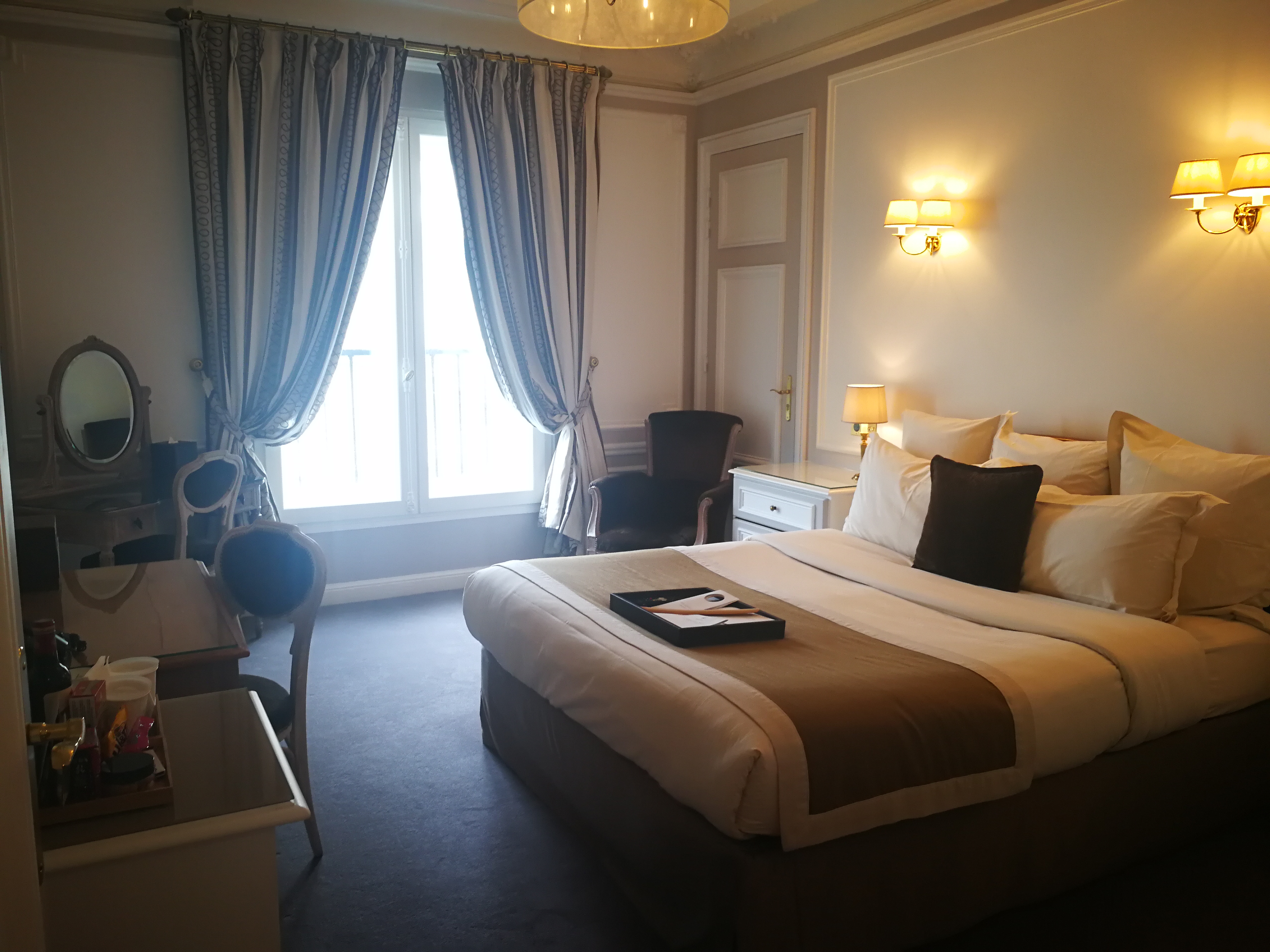 Cet hôtel est très charmant et bien situé. Le hall est magnifique. Personnellement j'ai pris une suite junior, le décor était beau quoique assez simple contrairement à mes attentes. Le personnel était très agréable et au petit soin c'etait très agréable. Nous avions pris un bouquet, qui est arrivé en retard et celui ci nous a donc été offert ainsi qu'une bouteille de vin de notre choix. La chambre était propre, spacieuse, très bien équipée. Petit bémol, dans la salle de bain la baignoire était un peu craquelée. Quand au petit déjeuner rien à dire, les viennoiseries étaient exquises et le chocolat chaud divin.