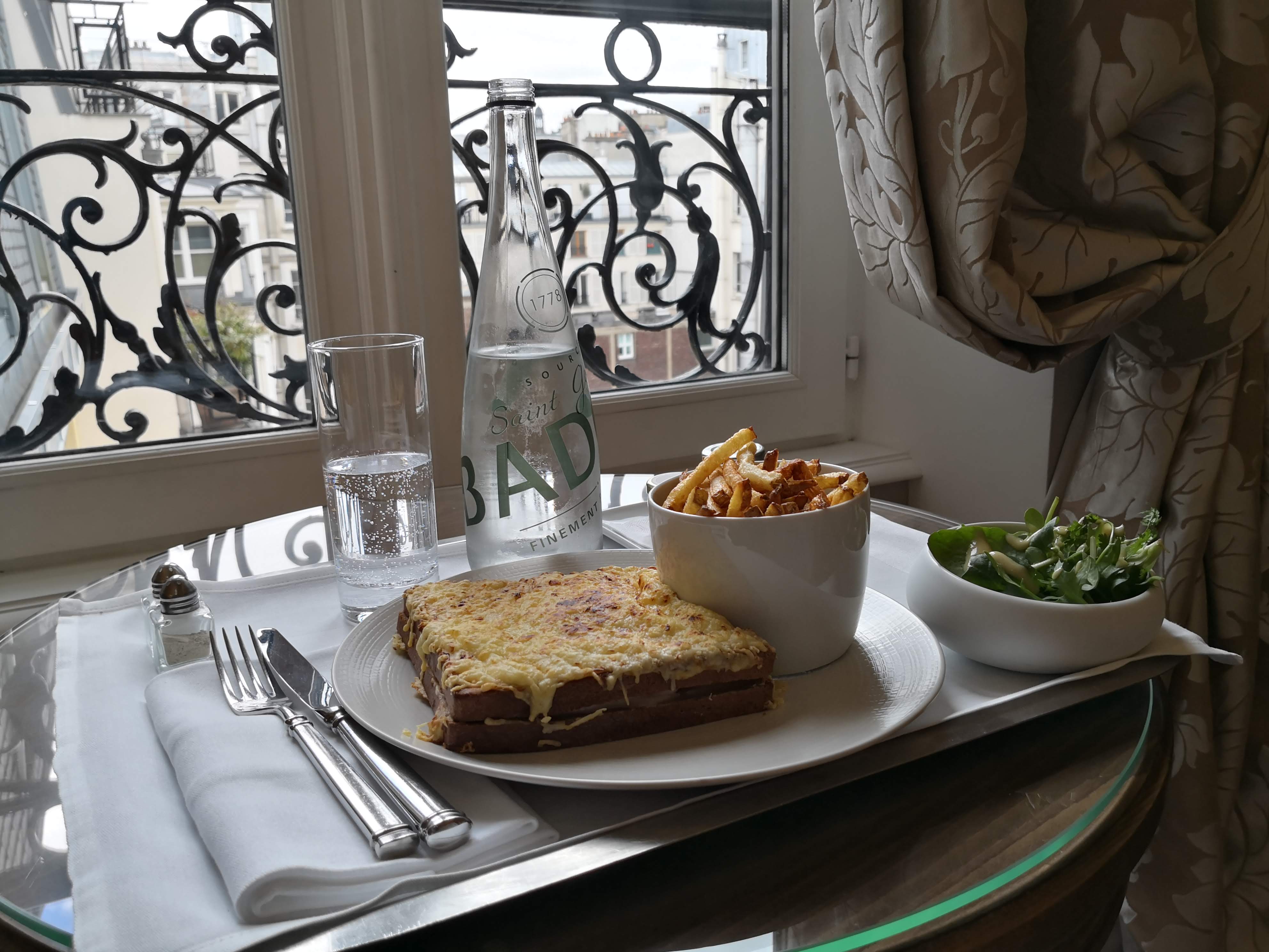 Pour se détendre mon ami et moi avons décidé de boire un verre et de grignoter un petit quelque chose dans cet hôtel, ne résidant pas à l’hôtel et nous nous sommes interrogé sur cette petite cour intérieure, eh bien ce moment fut plus que relaxant… La cour intérieure est paisible, une petite fontaine nous berce avec l’eau qui coule, on en vient à oublié la foule parisienne, on ferme les yeux et nous sommes dans un autre monde, l’ambiance atteint le graal. Concernant les repas, les prix sont raisonnables pour un hôtel 5*, un club sandwich joliment présenté et très bien équilibré, il est très léger et très bon. Mon ami quant à lui s’est satisfait d’une sublime tarte à la framboise. Je recommande vivement de visiter cet endroit et d’y déguster un bon petit plat.