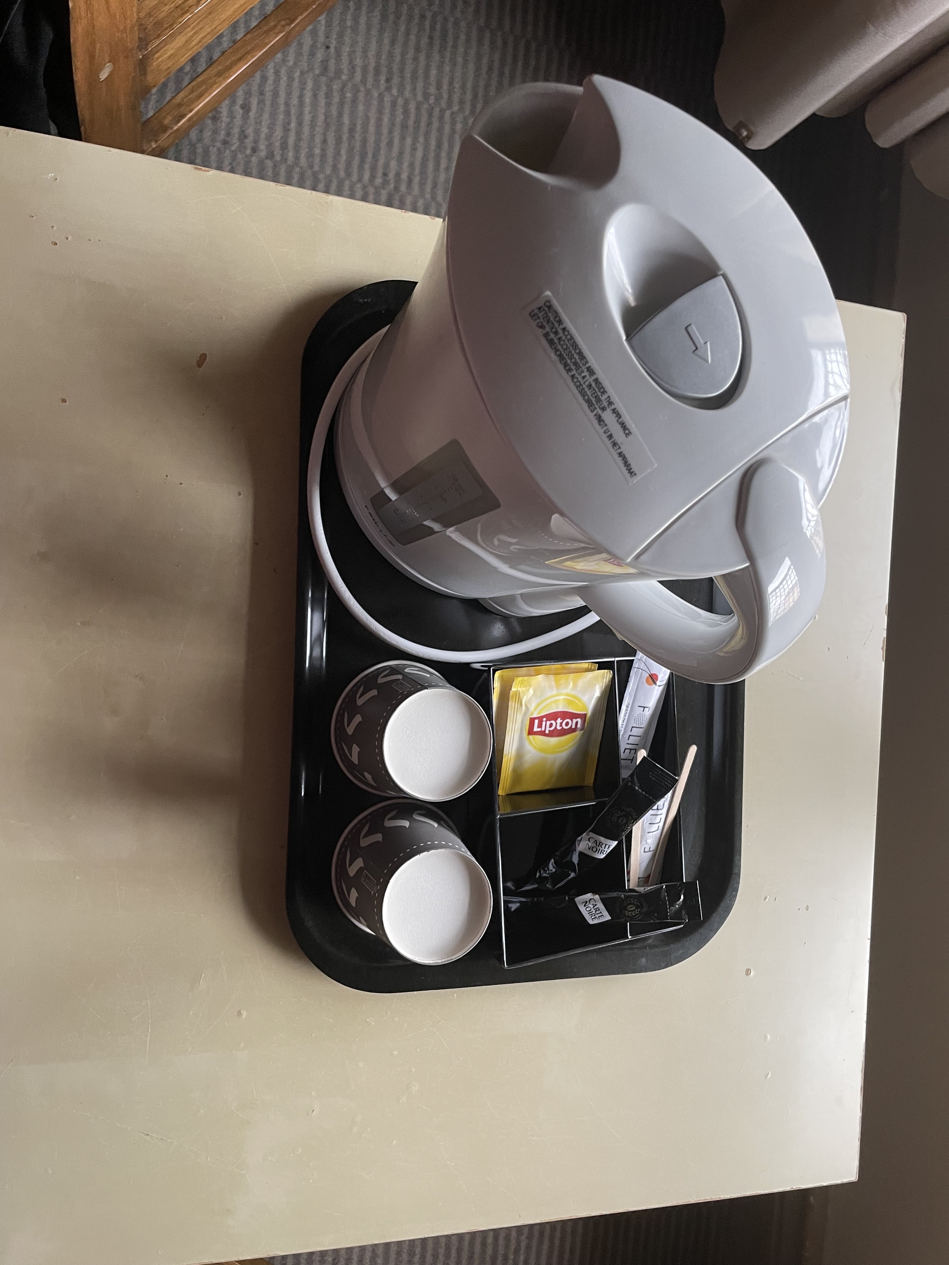 Hôtel très médiocre à part l accueil qui ne compense pas la piètre qualité. Il n y a aucun produit dans la salle de bain. Pas de bouilloire thé café dans la chambre. Housse de couette trouée. Vieille moquette dans les escaliers. Saut dans le temps : il y a 30 ans. Porte qui n isole pas du bruit des couloirs.