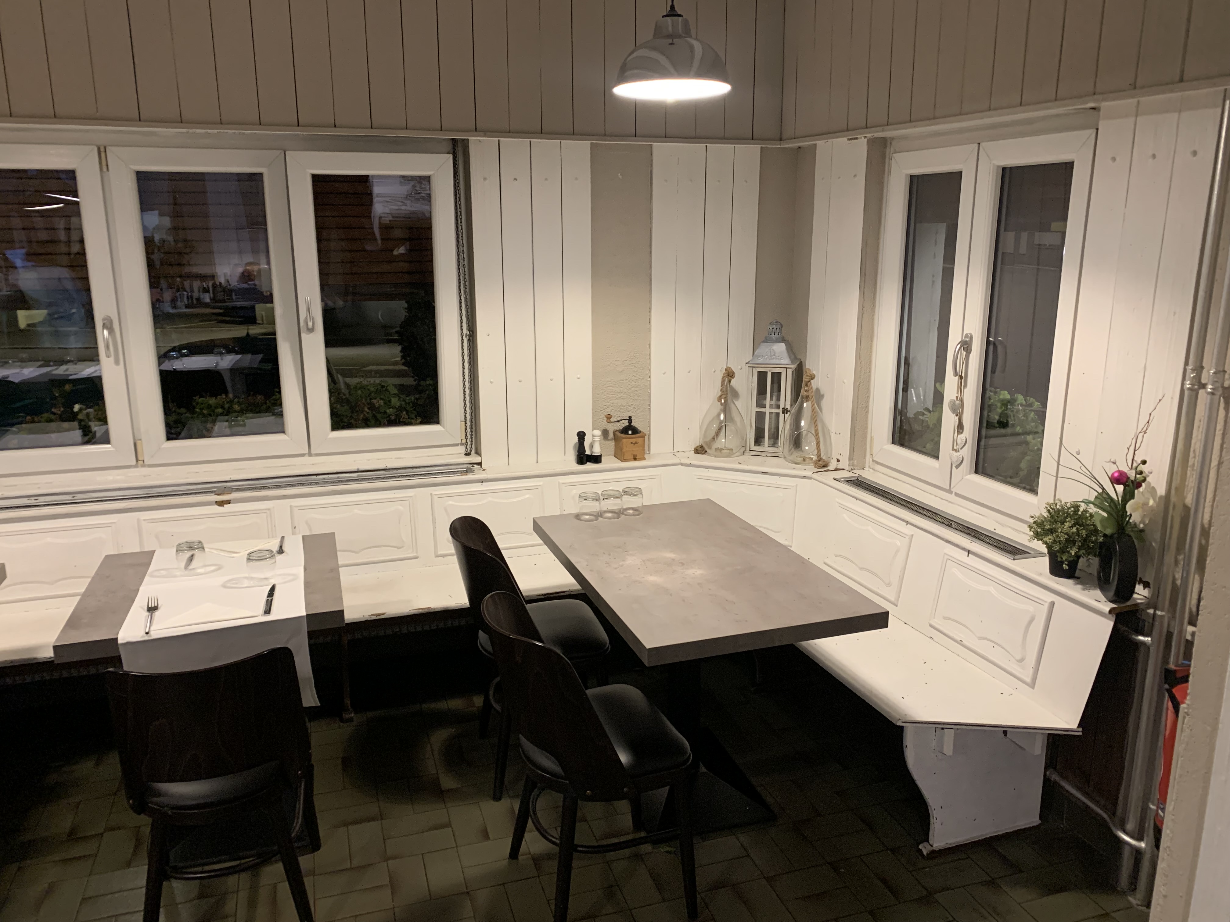 Nous avons déjeuné ici la semaine dernière. Le repas était très bon, de grandes portions, un service agréable. Malgré cela, nous nous sommes sentis absolument mal à l'aise, car l'espace était beaucoup trop étroit et les distances prescrites pour les Corona n'étaient certainement pas respectées. On se sentait totalement à l'étroit. Quel est alors l'intérêt de porter un masque pour entrer et sortir ?