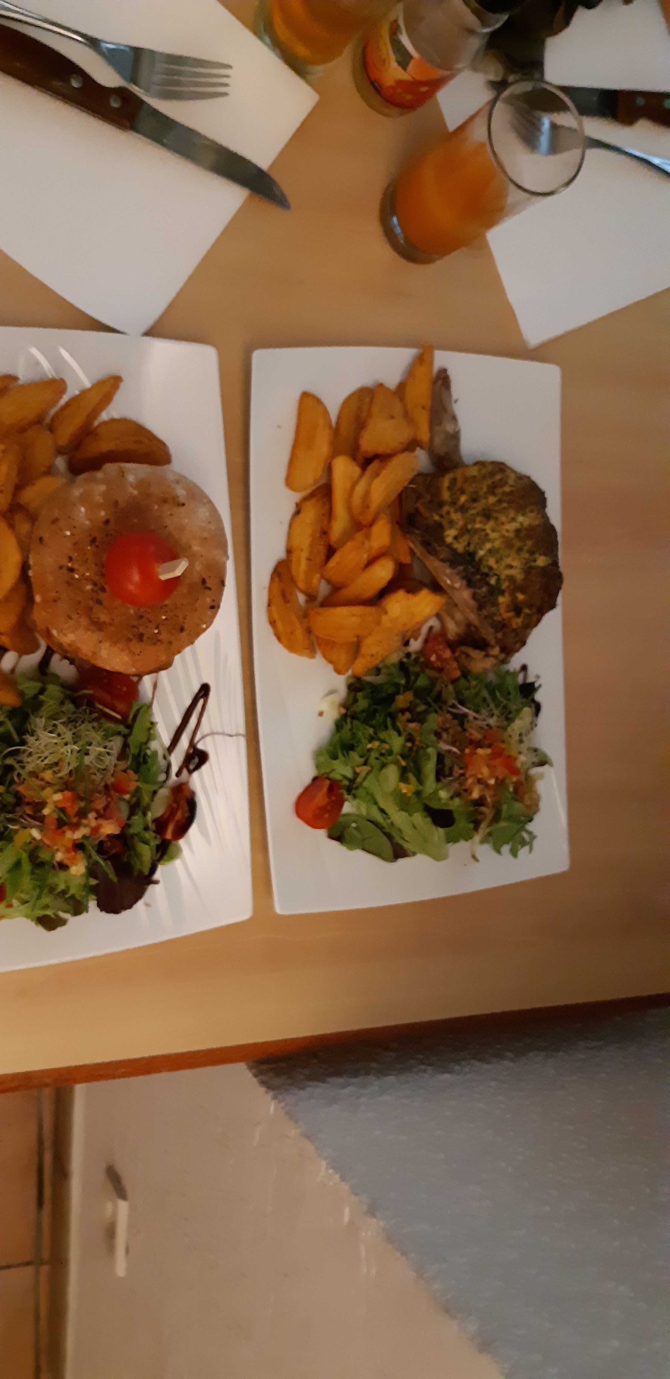 Personnel fort sympathique. Le chef a accepté de préparer l'entrée alors que les plats étaient déjà lancés. Très bonne cuisine. Belle assiette. Le seul point négatif est la proximité de la route. Vous pouvez vous y arrêter sans hésiter !