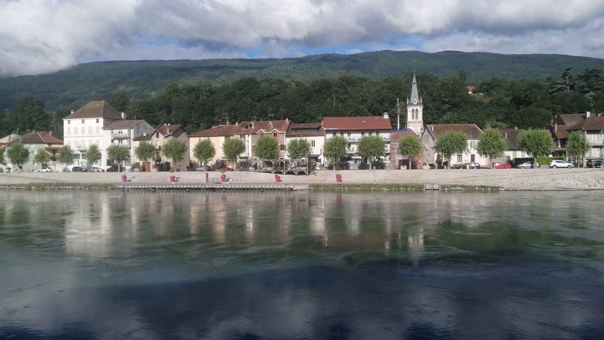 Vue sur le Rhône et le pont de SEYSSEL. Très calme. Soufflé au royal SEYSSEL delicieux