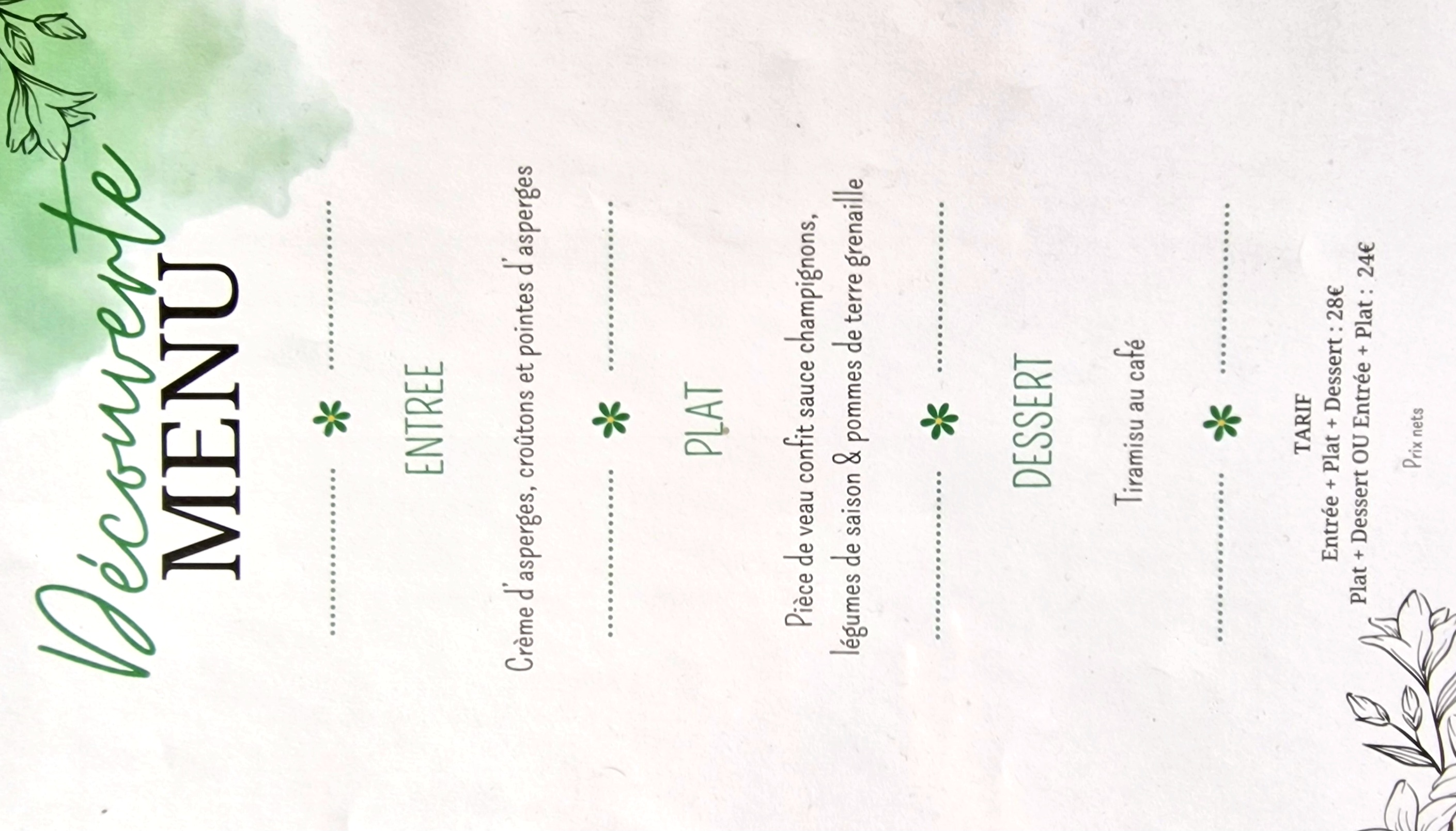 Accueil chaleureux pour un groupe de 24 personnes avec un menu à 3 plats plus café à 29€ . .Raviole de gambas- bisque de tomates, Paleron de veau confit, Pain perdu caramel glace...un plaisir pour le palais, délicieux, je recommande.