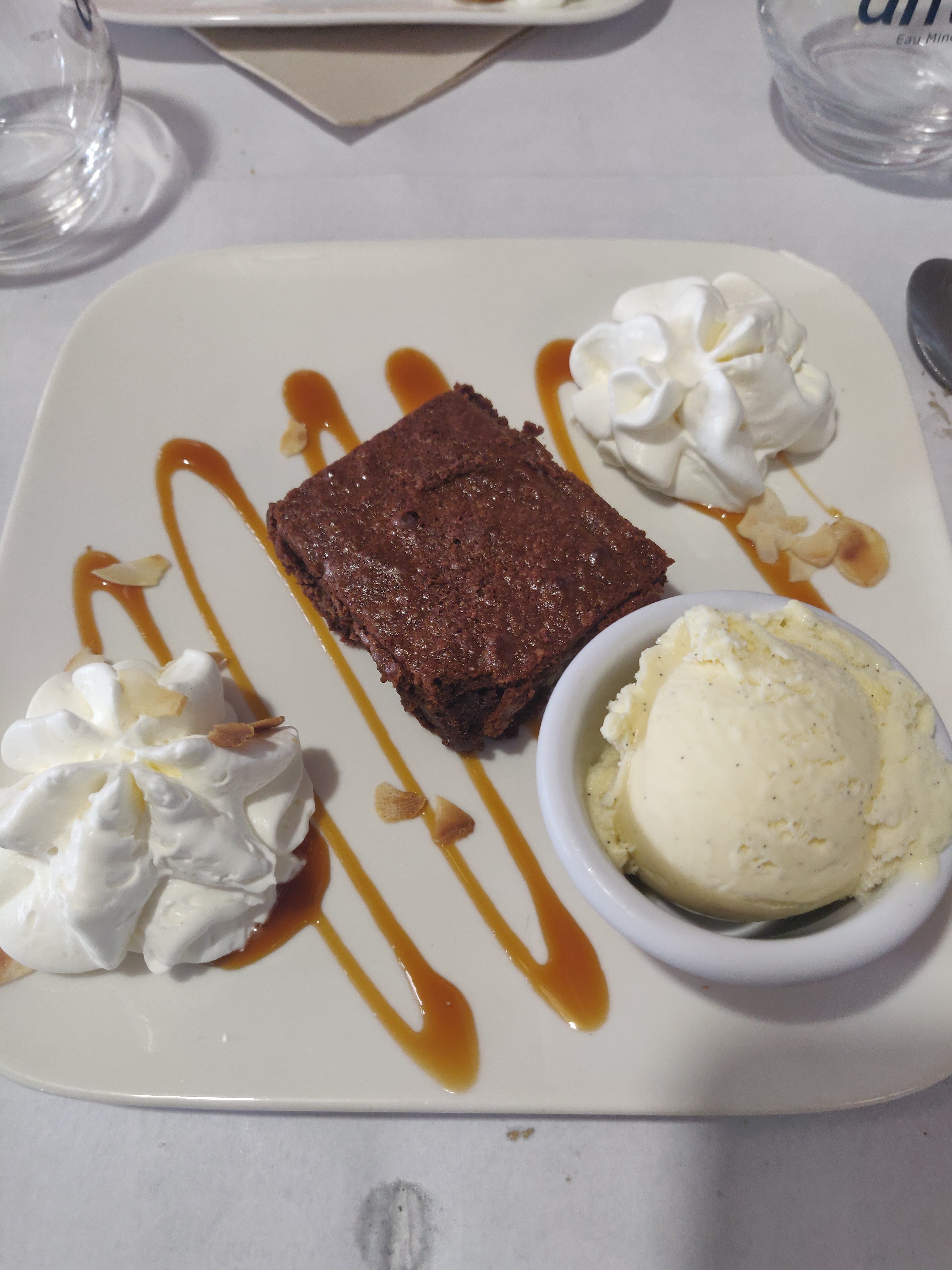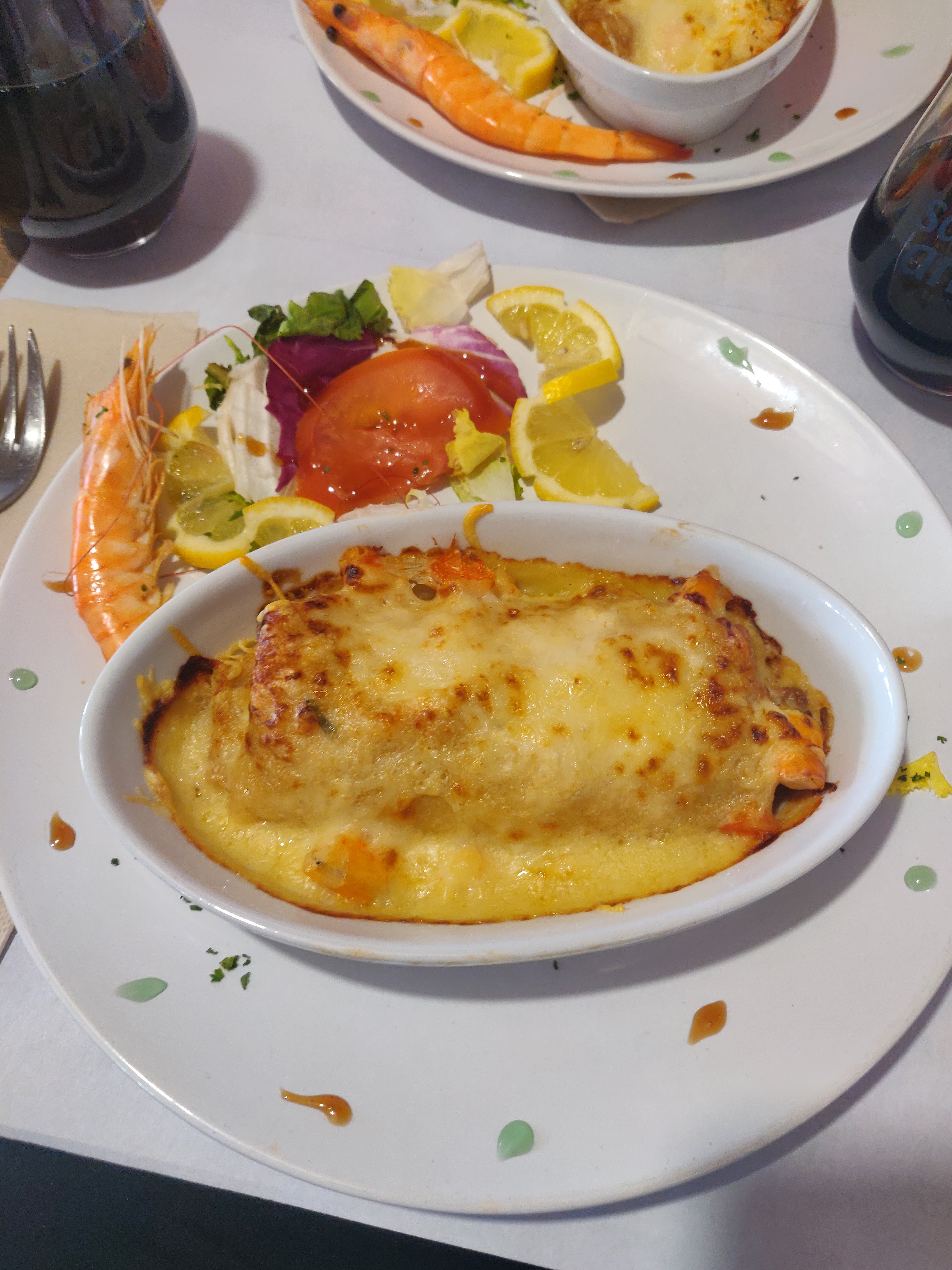 Nous sommes arrivés assez tard et avons été pris en charge sans difficultés 😉. En route pour le plat du jour : moules au Roquefort. Les moules de bouchot étaient petites mais délicieuses et le Roquefort ? Je le cherche encore. 😅 heureusement que la crème et les échalotes ont fait le boulot. Je recommande Impossible de joindre une photo dommage