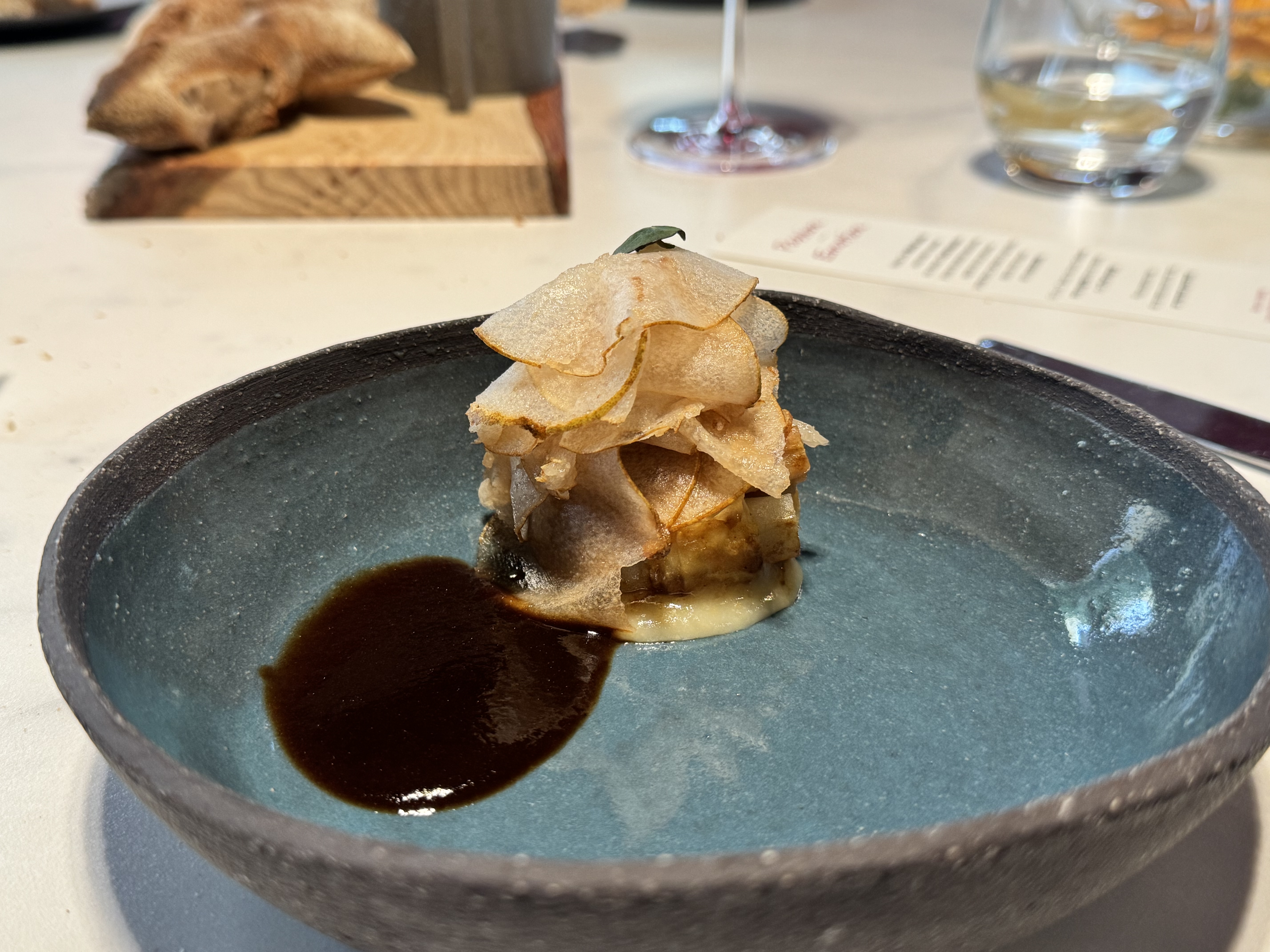 Une super découverte offerte par mes supers patrons Nous avons dégustés le menu 5 temps C'était succulent, copieux très fins un régal pour gustatif et visuel. Service au top, les plats très bien expliqués Le chef qui sort de cuisine et vient à table vous voir génial À refaire je conseille vivement
