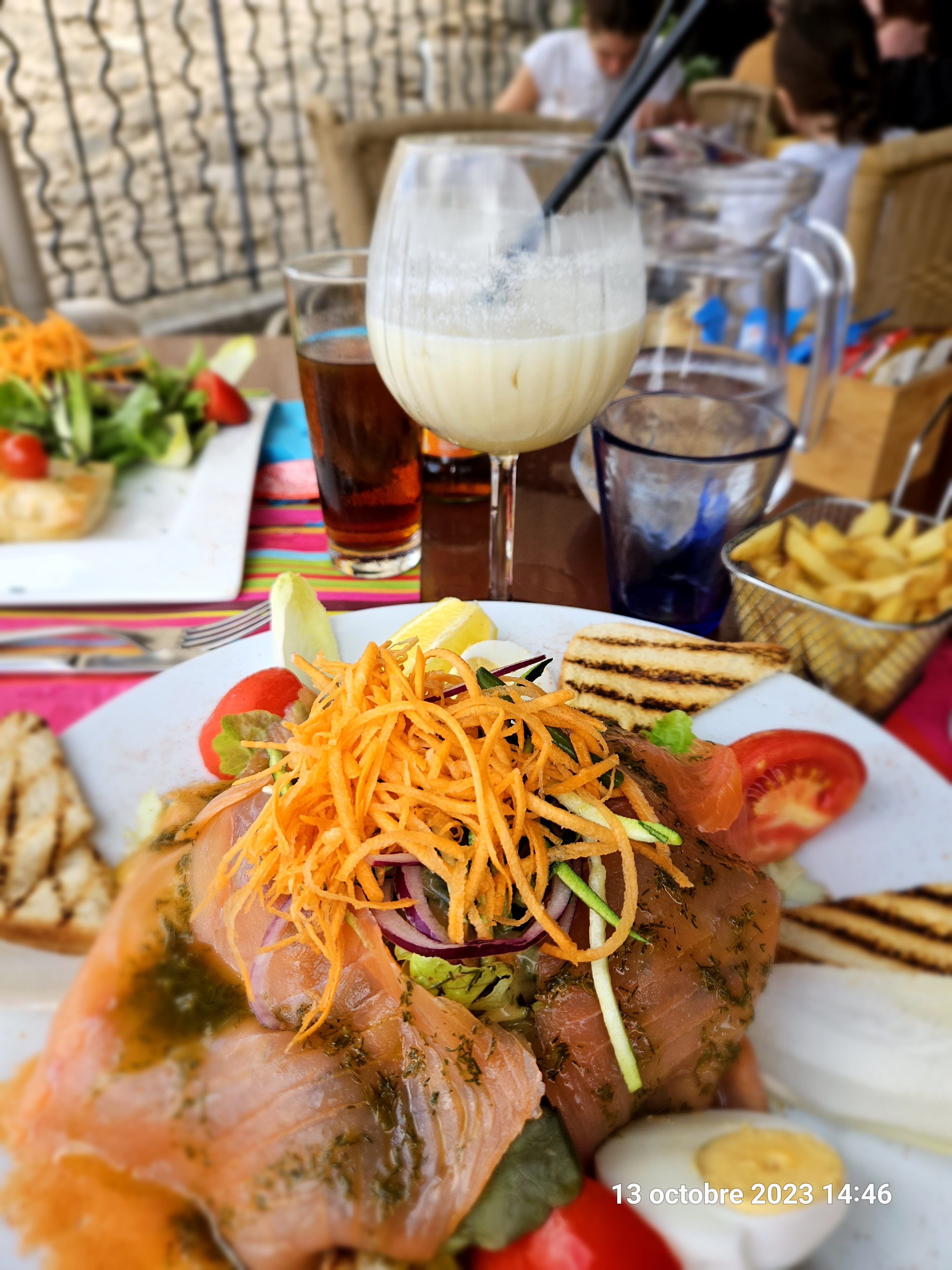 Les plats, salades et desserts très copieux . Cadre très sympathique/,terrasse panoramique agréable. Serveuse et serveur très pro et agréable.