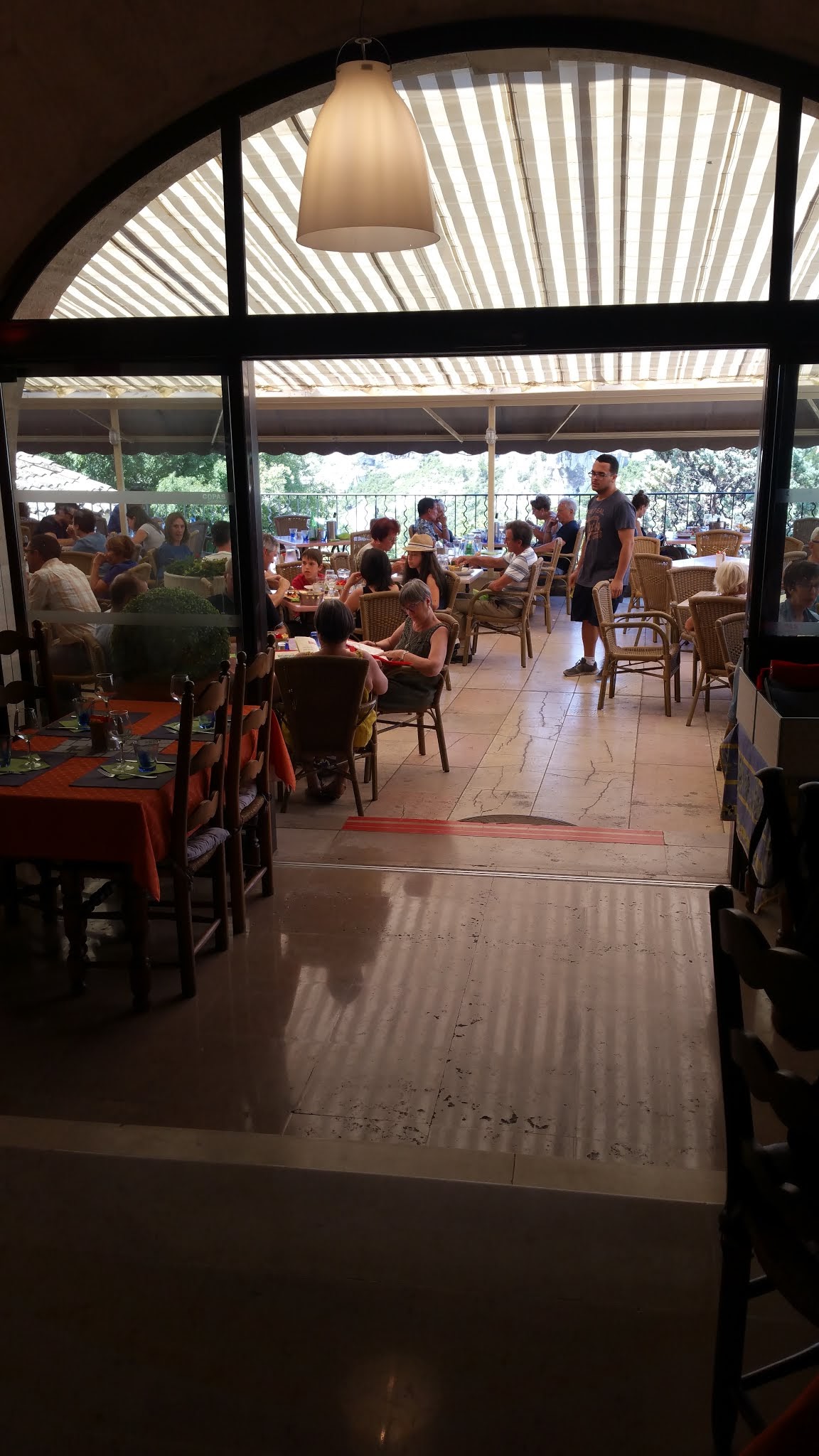 Très agréable surprise. En contebas, il y a une grande terrasse avec une très belle vue sur la vallée, et surtout il y a de la bonne qualité dans les assiettes, avec un service agréable et efficace (alors que je m'étais préparé par dépit à un piège à touristes)