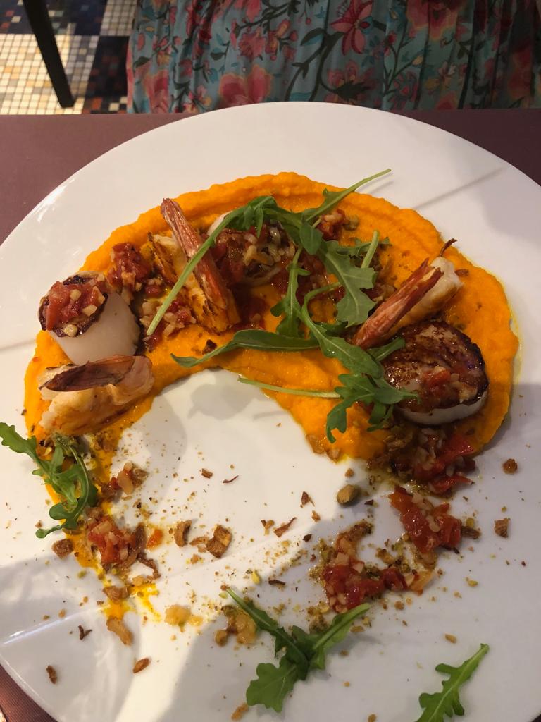 Visite en aout 2019 a 5 dont 3 enfants : Au restaurant de l'hôtel. Une des plus belle surprise de notre été culinaire ! J'écris 2 mois apres le diner mais je me souviens encore de cette excellente entrée de chipirons avec espuma à l'ail !!! Une merveille. La salle est grande et manque un peu de chaleur mais très vite compensée par le service et la qualité de la cuisine servie en portion ultra généreuse
