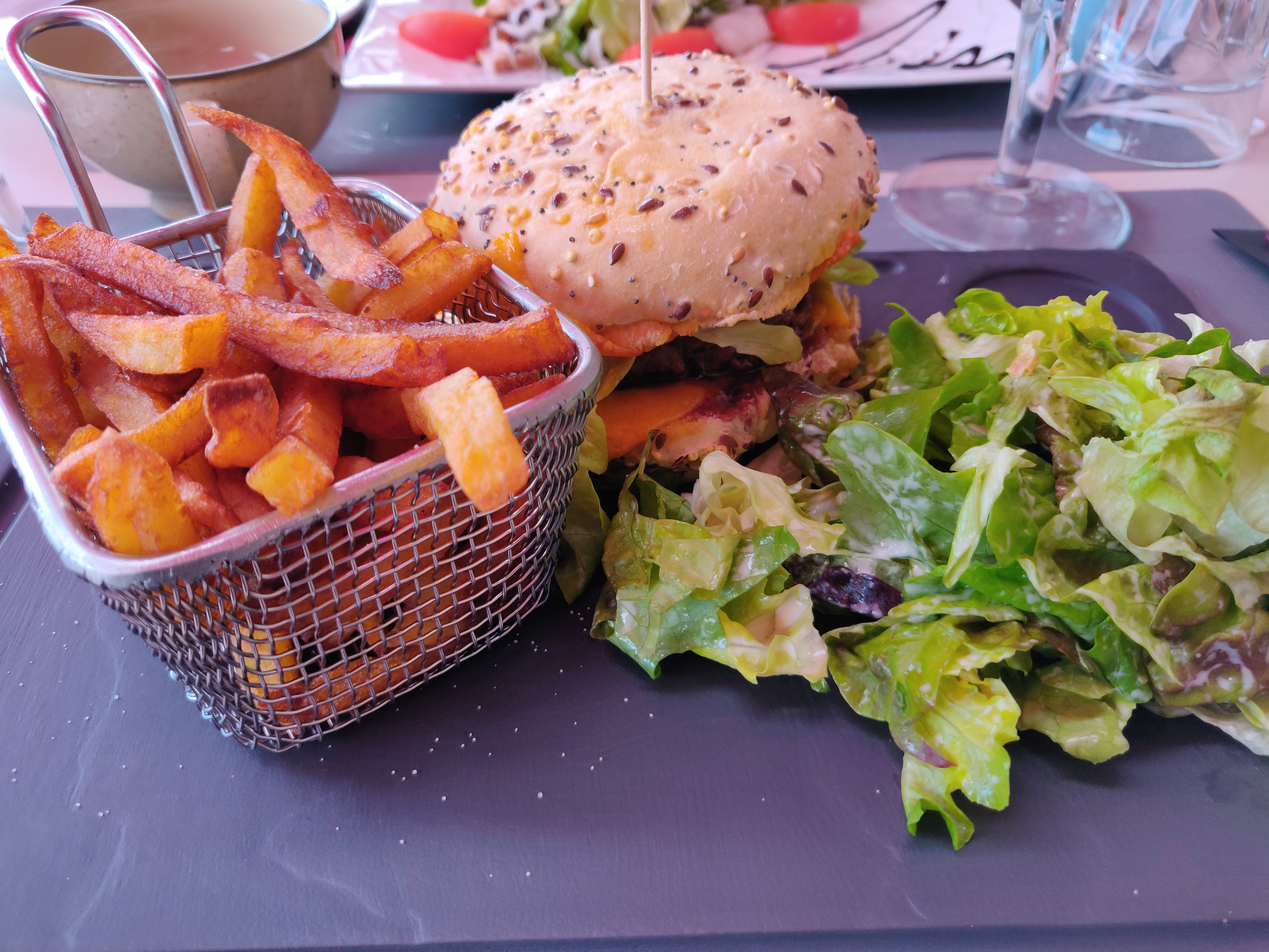 Un burger végétarien dont la composition est encore à questionner. L’odeur et le goût de fromage de chèvre étaient particulièrement présents sans que cela ne soit mentionné sur la carte. Le patron, mis au courant de ma question sur la composition du burger est sorti en trombe de la cuisine pour littéralement me faire une scène dans tout le restaurant sans jamais s’excuser de la présence de fromage de chèvre et en refusant d’admettre que l’odeur était bien présente (et confirmée par mes voisins de table). Il a même osé indiquer qu’il s’agissait plutôt de son pain. Il n’a même pas eu la décence de me proposer autre chose et a savamment évité de nous dire au revoir après que l’on ait TOUT payé. Cela fait cher les trois feuilles de salade et quelques frites.. A fuir !!!