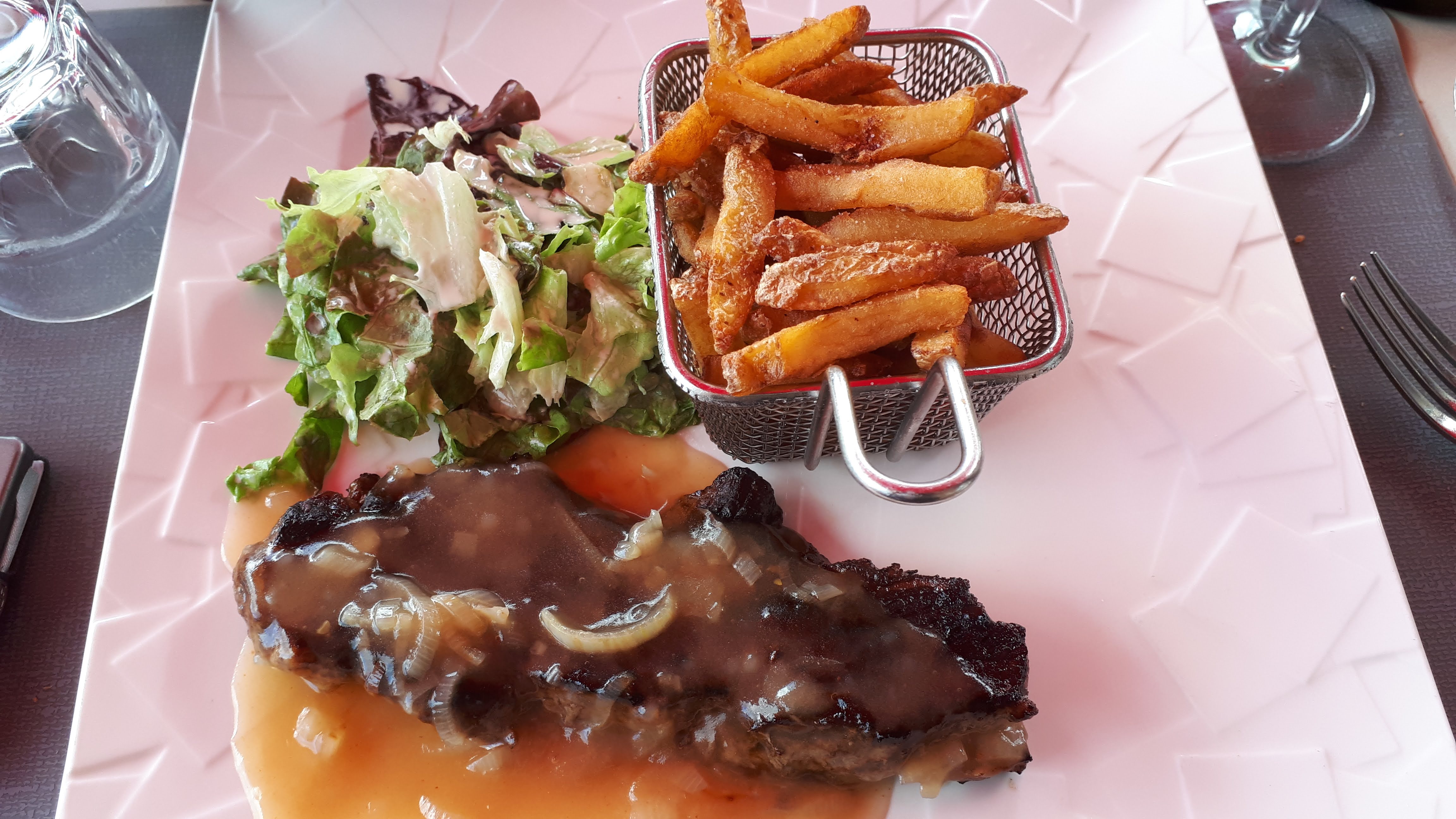Restaurant correct, personnel sympathique, Nous avons commandé un plat de moules à la crème et un plat de 3 côtes d'agneau, qui étaient pas mal, en revanche les frites n'étaient vraiment pas bonnes, et gorgées d'huile. Un peu déçue....