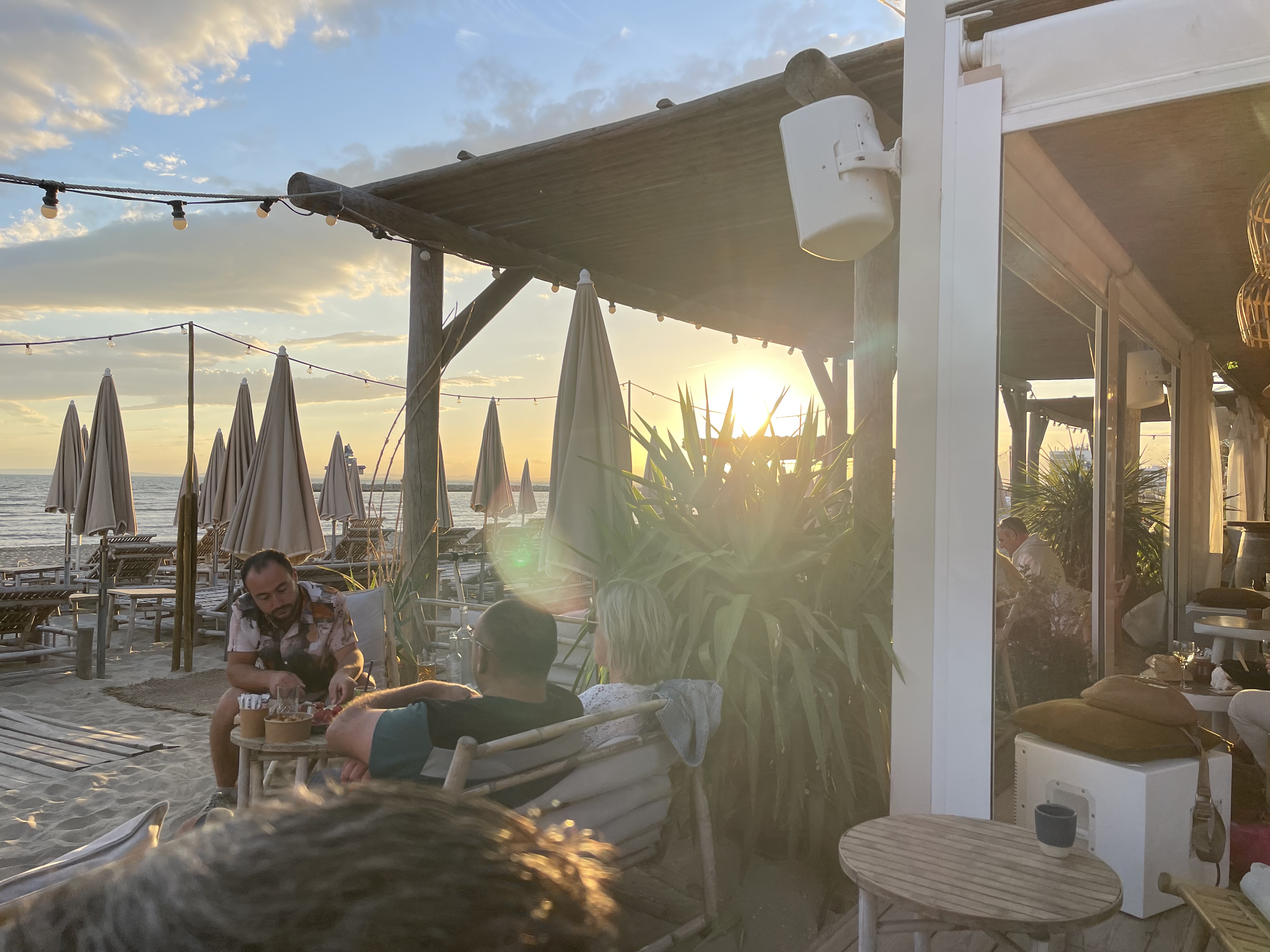 Probablement le meilleur restaurant du Grau du roi. Pour un dîner en bord de plage, avec vue directe sur le soleil couchant.. Un service 100% professionnel et agréable (les plats s'enchaînent sans qu'on ai à réclamer, l'eau est distribuée d'office ainsi que le pain, les serveurs-ses sont discrets et agréables, les tenues sont coordonnées...), une cuisine originale et des produits de qualités, que demander de plus? Ah si, une carte des vins/cocktails plus que raisonnable et un choix adapté à la cuisine et l'ambiance du lieu... Ah, ils l'ont déjà !! Allez y les yeux fermés pour un moment de qualité. 💞