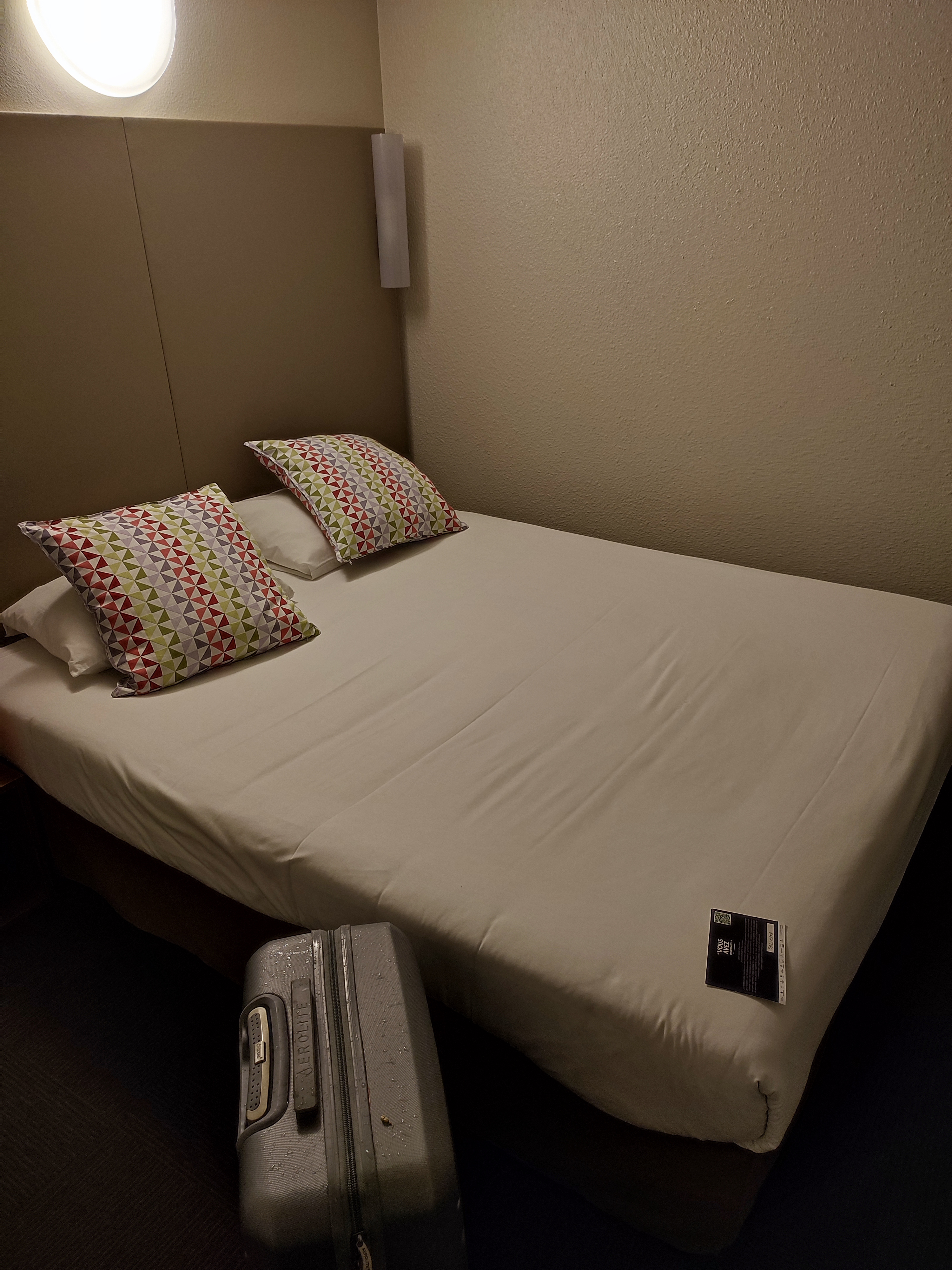 Nous avons réservé à la dernière minutes, aux alentours de 22h00 pour une arrivée à 02h00. Les explications pour récupérer les clés et venir dans notre chambre étaient très précises. Il est vrai que nous avions trouvé le prix légèrement élevé pour ce type d'hôtel mais la chambre, bien que située à l'autre bout de la zone, est plutôt spacieuse et très propre. Un grand lit que j'ai personnellement trouvé dur (ma compagne en a été satisfaite, il ne s'agit donc que d'une question de goût qui ne joue pas sur la note donnée.) Avec un coin café et thé à disposition, une télé qui ne nous a pas servi mais qui est tout de même mise à disposition. Un coin WC avec une baignoire, plutôt sympa. Les consommables étaient tous présents et en quantité, c'est agréable. Seul point négatif, nous entendons très simplement les gens qui passent sur le palier avec pourtant fenêtres, portes et volets fermés. Choix du hasard, aucun regret pour notre part.