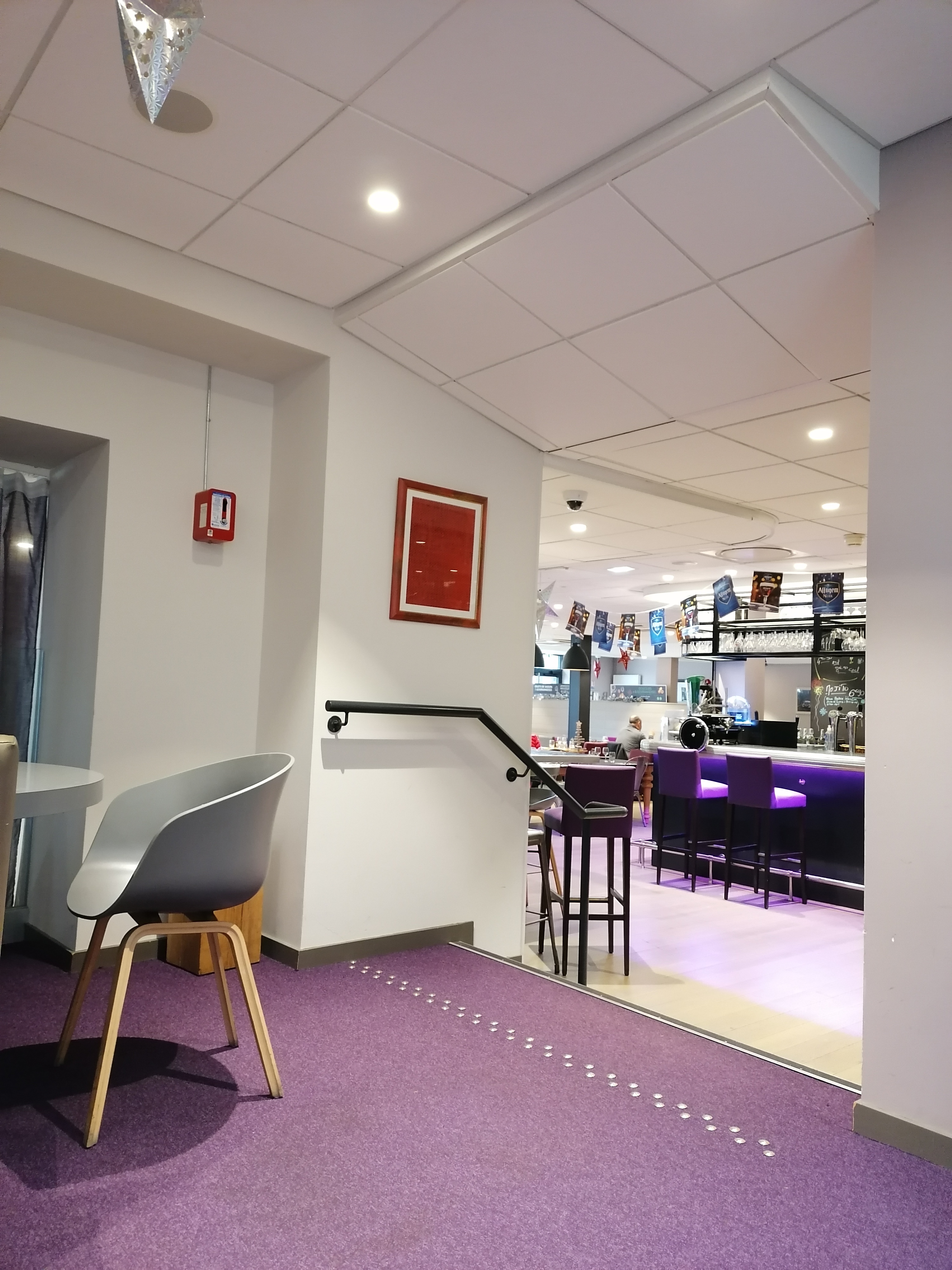 Hôtel bien situé, un peu cher, 90 € la chambre, et c’est pas très loin du centre ville ( très utile). La chambre est grande, et il y a une véritable salle de bain avec une petite baignoire qui fait office de douche. Attention, ça glisse ! J’ai glissé à trois reprises, dont une sévère qui m’a contraint à consulter un médecin le lendemain. Le lit d’est grand et la literie confortable. Côté petit dej, il se prend dans le restaurant « Le comptoir ». Vu le prix, on aimerait avoir des œufs brouillés, avec du bacon, et des fruits frais ou même du pur jus d’orange gras. Hélas ! La concurrence comme Ibis Budget, fait mieux. Pour le même prix. Côté pratique, l’hôtel possède son restaurant « Le comptoir ». Au prix où la bière pression est vendue, ils auraient l’appeler « Le jack pot ». 10 € une pression, ce n’est plus excessif, ça frise l’arnaque même si le verre est original ! Côté dîner, là aussi. Une pièce de bœuf t quelques frites molles (réchauffées sans doute) et un café gourmand pour 48 €. Les autres clients ont été également surpris de leur note ! Il vaut mieux prendre son blouson et sortir. On peut trouver mieux ailleurs , et surtout meilleurs ! C’est dommage ! Peu mieux faire.