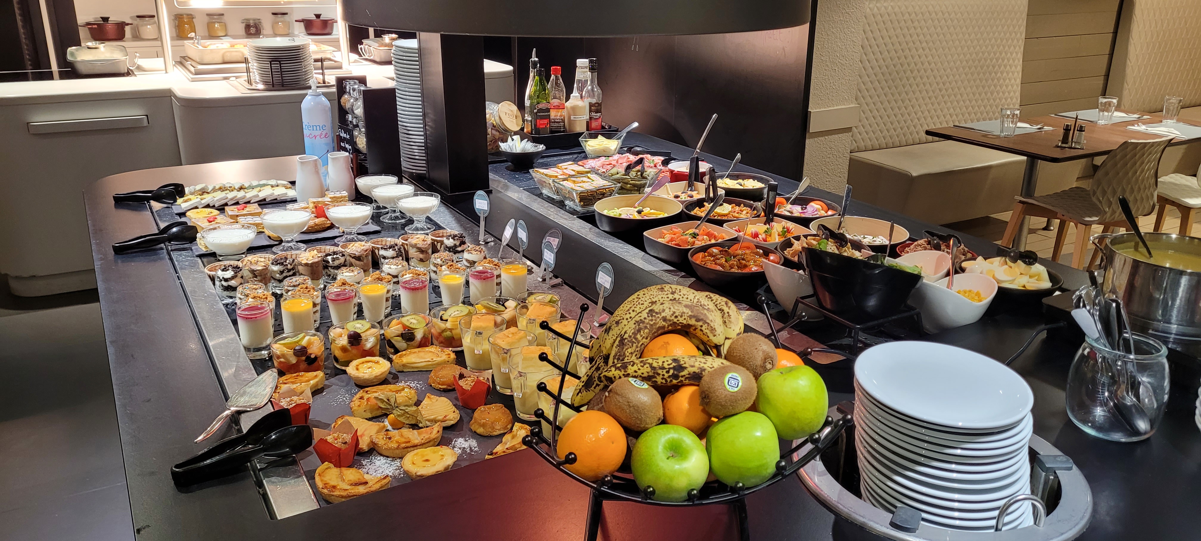 Hotel sympa respect des gestes barrières pour le petit déjeuner.
