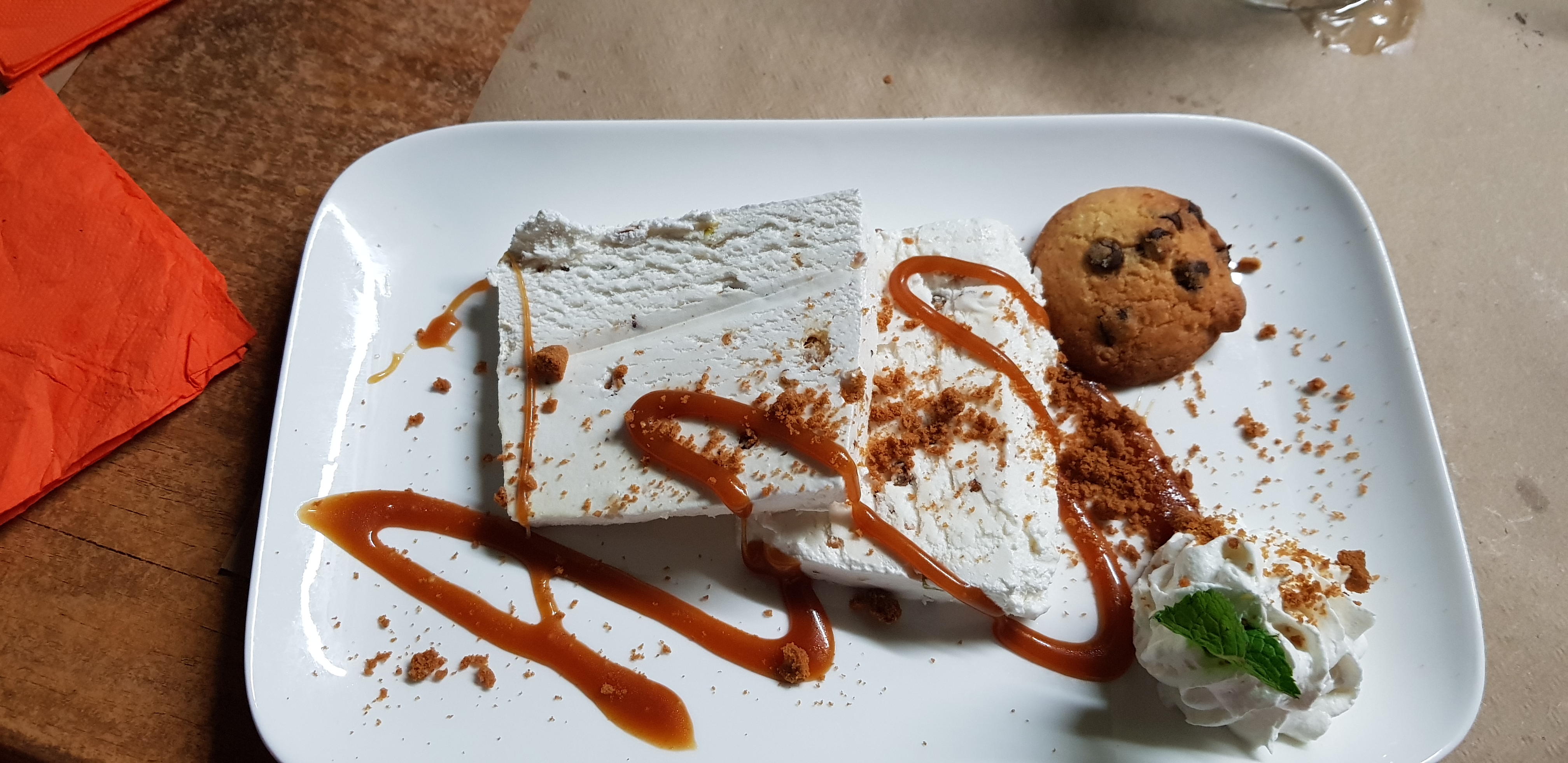Entrée ,plat et dessert copieux, personnel sympathique, lieu chaleureux . Je recommande fortement. Nous étions 9, personnes n'a était déçu. A refaire l'été pour profiter de la terrasse. Merci.