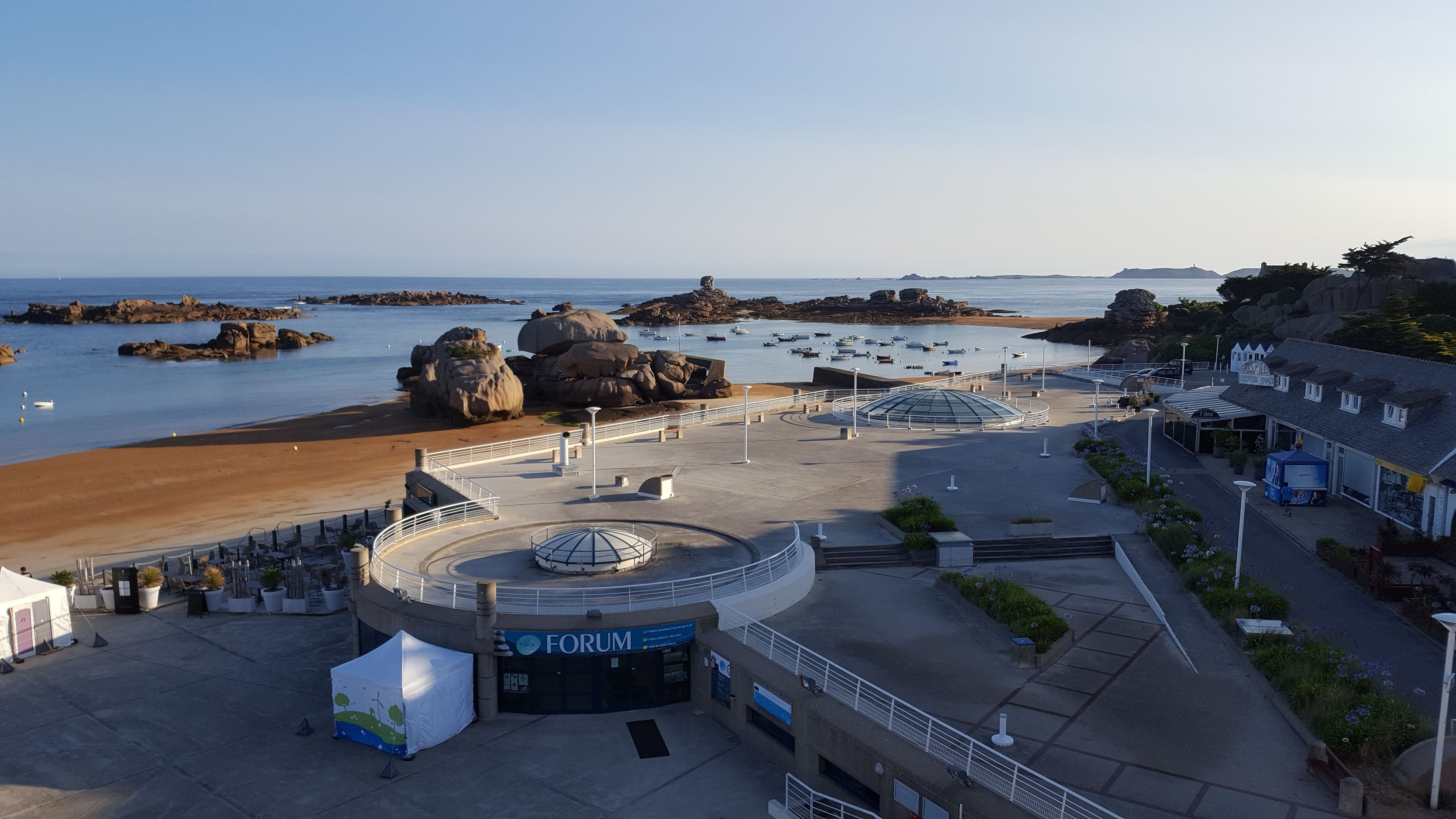 Idéalement placé au cœur de la côte de granit rose Tout est accessible à pied Très bon accueil à l’hôtel, chambres avec vues et PDJ copieux