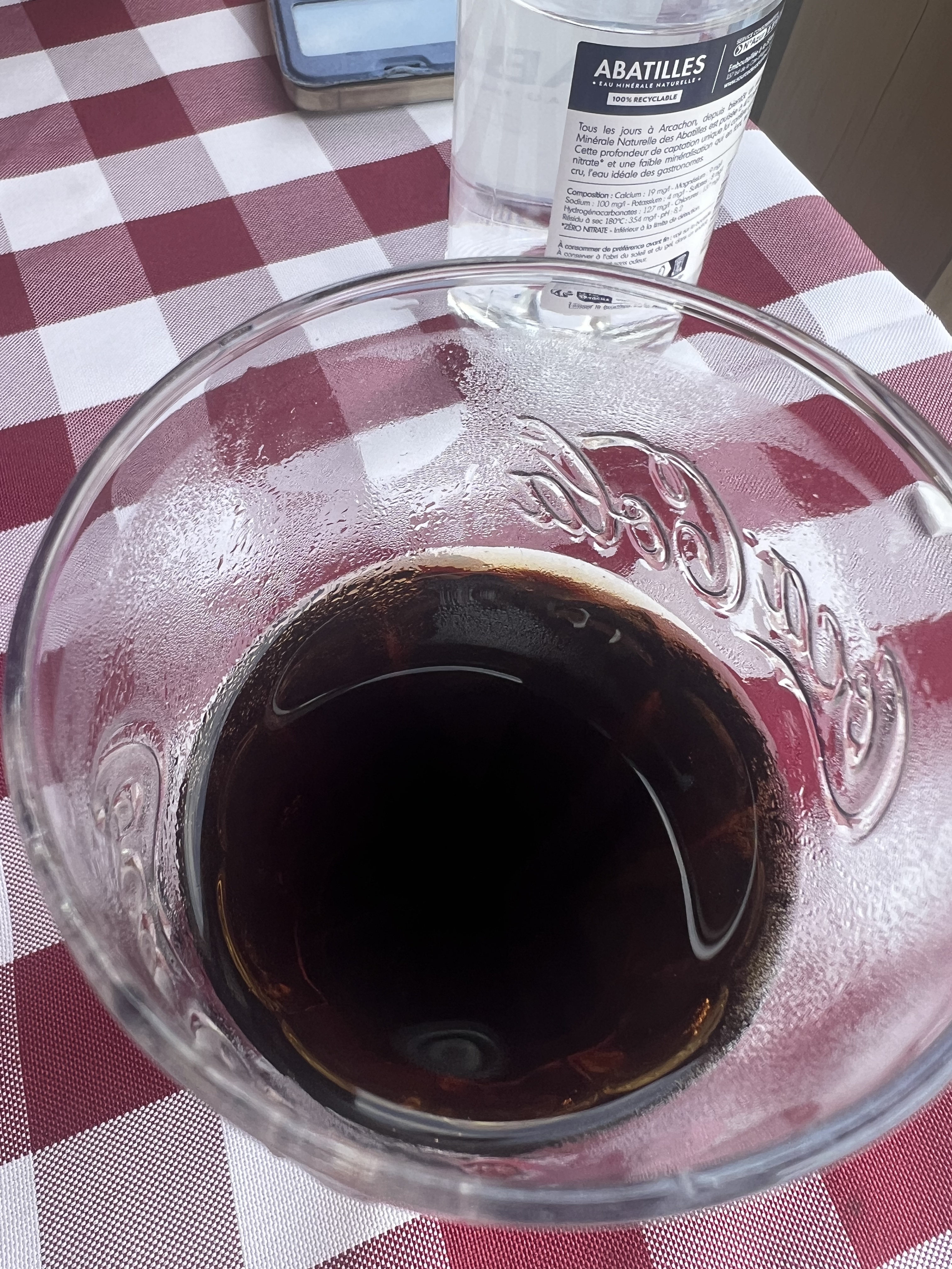 30min pour recevoir la carte, 1h pour recevoir l’entrée puis 2h d’attente pour le plat, tout ça pour un confit cramé.. Heureusement l’eau qu’il a fallu aller chercher nous mêmes est fraîche.