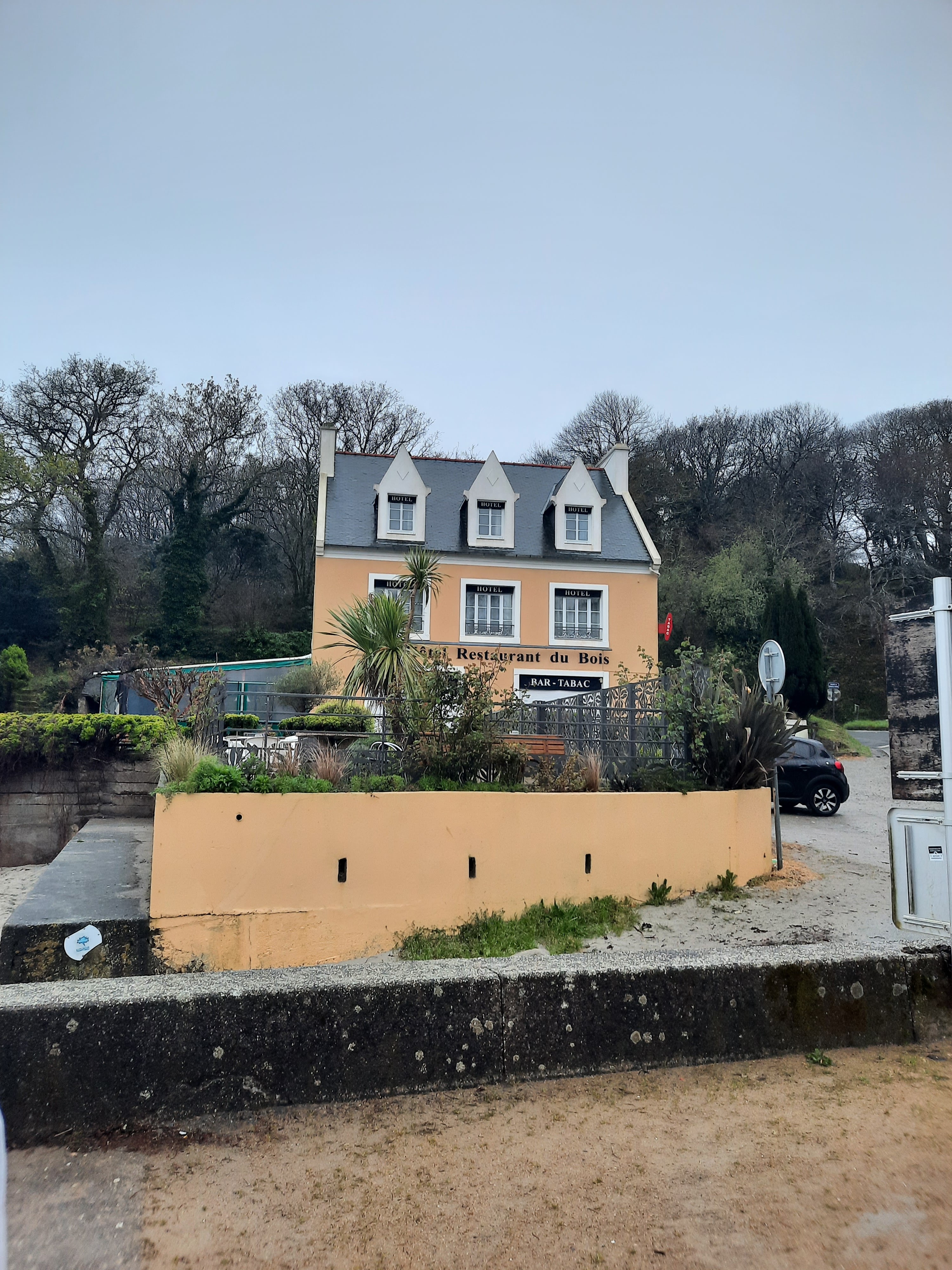 J'ai organisé dans cet établissement une fête privée d'anniversaire. Malgré que nous étions sur le weekend de Pâques, et que l'établissement devait fermer pour 1 semaine de vacances, Céline, la propriétaire, après en avoir échangé avec son cuisinier et sa serveuse, a gentiment accepté d'ouvrir son établissement pour nous accueillir. C'était d'autant plus attentionné de sa part, que je lui ai demandé de nous organiser pour le samedi midi, un buffet froid pour 54 personnes, ce qui n'est pas dans les habitudes de la maison. Toute l'équipe de l'hôtel s'est investie dans la préparation de l'évènement. Chacun, patronne, cuisinier, serveuse, donnant son avis et ses idées pour une fête réussie. Nous avons été accueillis comme des rois. L' équipe s'est mise en 4 pour nous accueillir et faire en sorte que la fête soit des plus agréable. Le cuisinier à assuré... Le buffet était parfait, et ses préparations (maison ! ) étaient d'une extrême qualité. Sans parler des tartes aux fruits.... divines...Tout cela complété par un service au top. La serveuse était au petit soins avec nous tous... et Céline, la patronne veillait en permanence à ce que nous ne manquions de rien... De plus, il était prévu que nous soyons installés dans la véranda et le buffet servi dans la bar. Le temps était tellement beau, que Céline n'a pas hésité un seul instant à privatiser son établissement pour la fête et nous a mis à disposition sa superbe terrasse vue mer, en prenant soin de fermer les barrières pour éviter que d'autres clients se mélangent à la fête. Je n'en demandais pas tant. Ce fut tout simplement une journée magique. Tous mes remerciements à l'équipe de l'hôtel du bois. Journée réussie, grâce à l'accueil et au professionnalisme de toute l'équipe. Tout me monde en garde un souvenir magnifique. Ce fut un grand moment de bonheur.