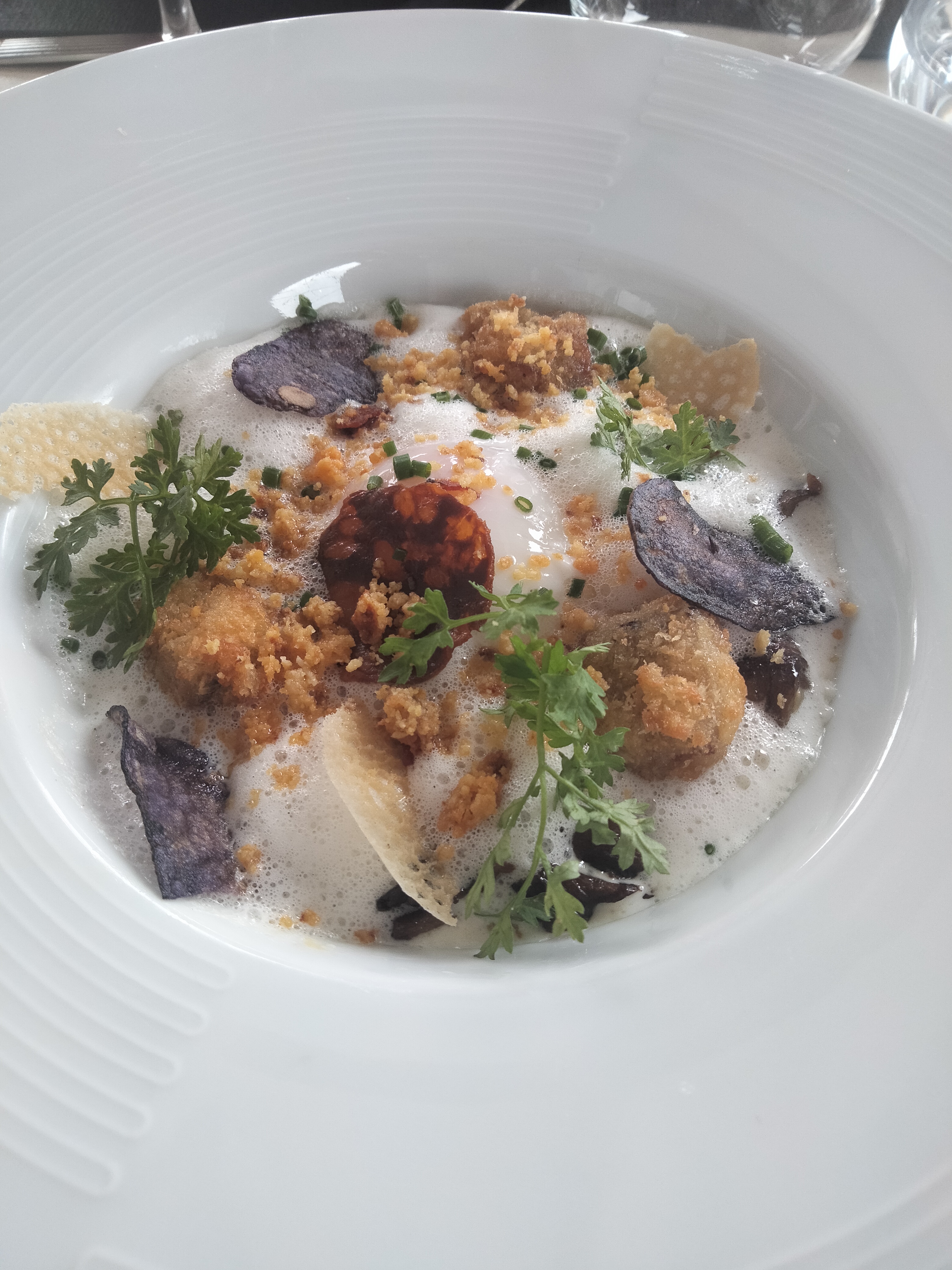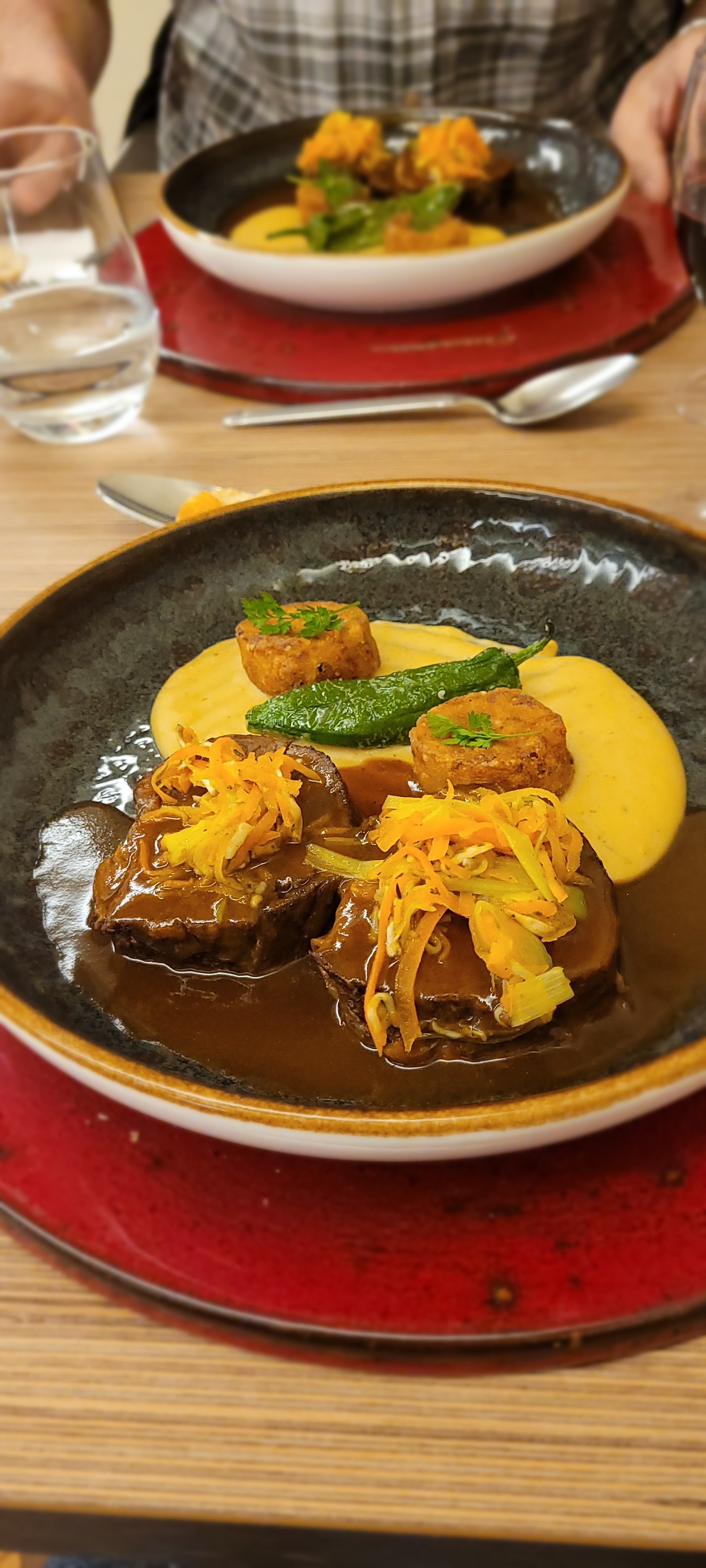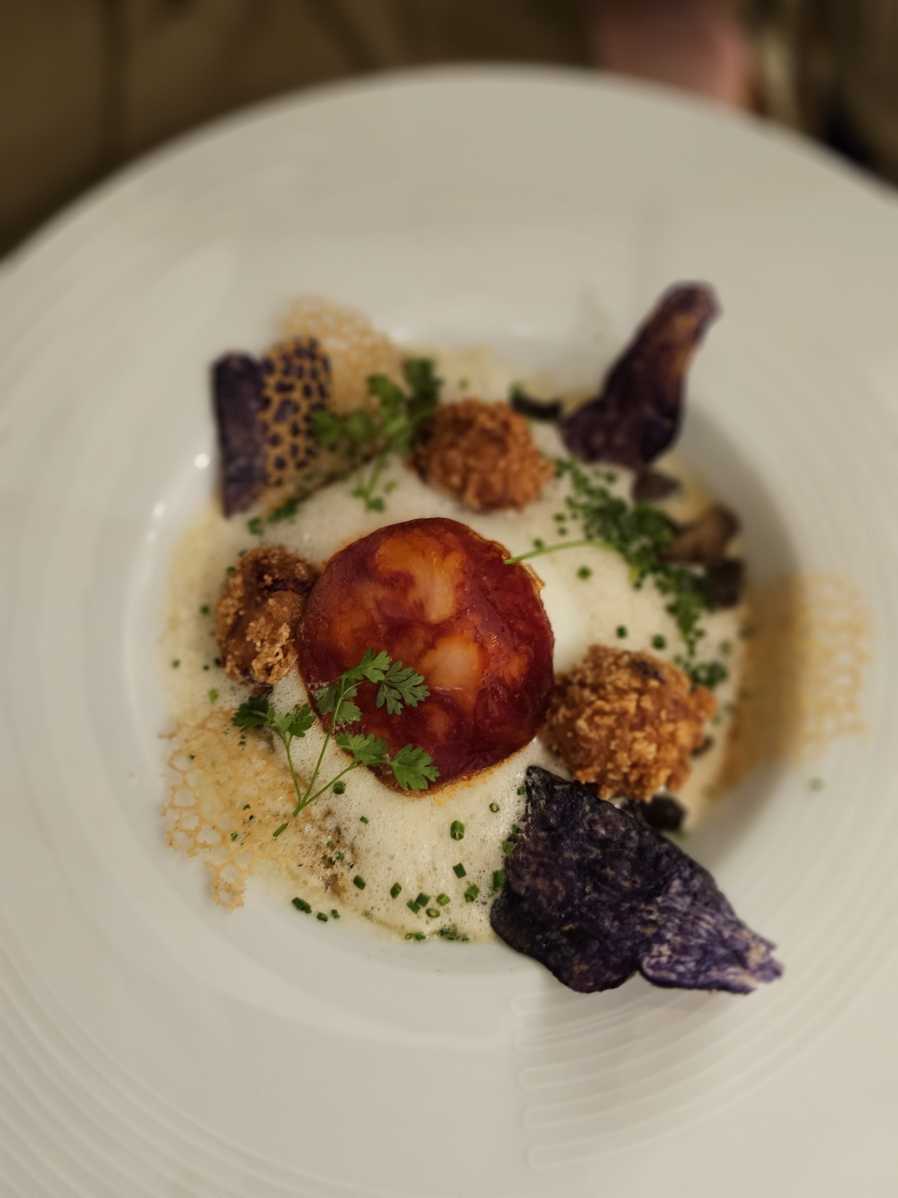 Cinq étoiles pour une nourriture exceptionnelle Créatif, savoureux, joliment assaisonné et présenté. Super serveur aussi. Vin délicieux. Honnêtement, le meilleur restaurant où j’ai mangé. Excellent rapport qualité/prix avec des menus au choix à 23 € ou 33 €. Nous ne mangeons pas de viande et sommes ravis des plats de légumes et de poisson. Je reviendrai encore et encore.