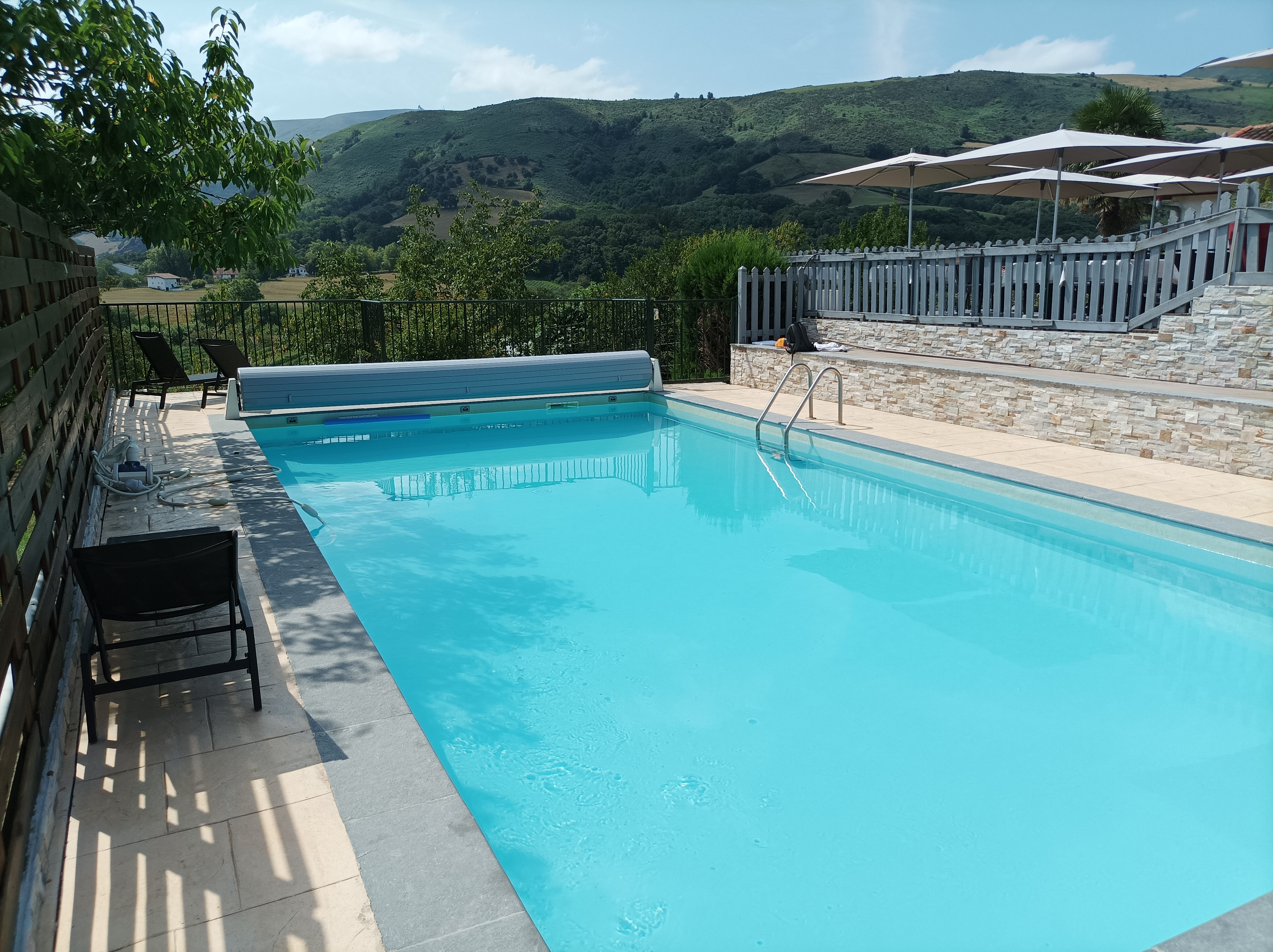 Quelques jours au pays basque. Chambre privilège spacieuse, confortable et bien isolée sur le plan du bruit. Buffet de petits déjeuners complets et copieux avec produits frais et locaux. Dîners 3 services en demi-pension cuisinés maison composés de plats en général fins et savoureux. Salle avec parfois des convives un peu bruyants. Jolie vue sur la vallée à l'arrière. Accueil et personnel au contact agréable. Un bon souvenir qui donne envie d'y revenir.