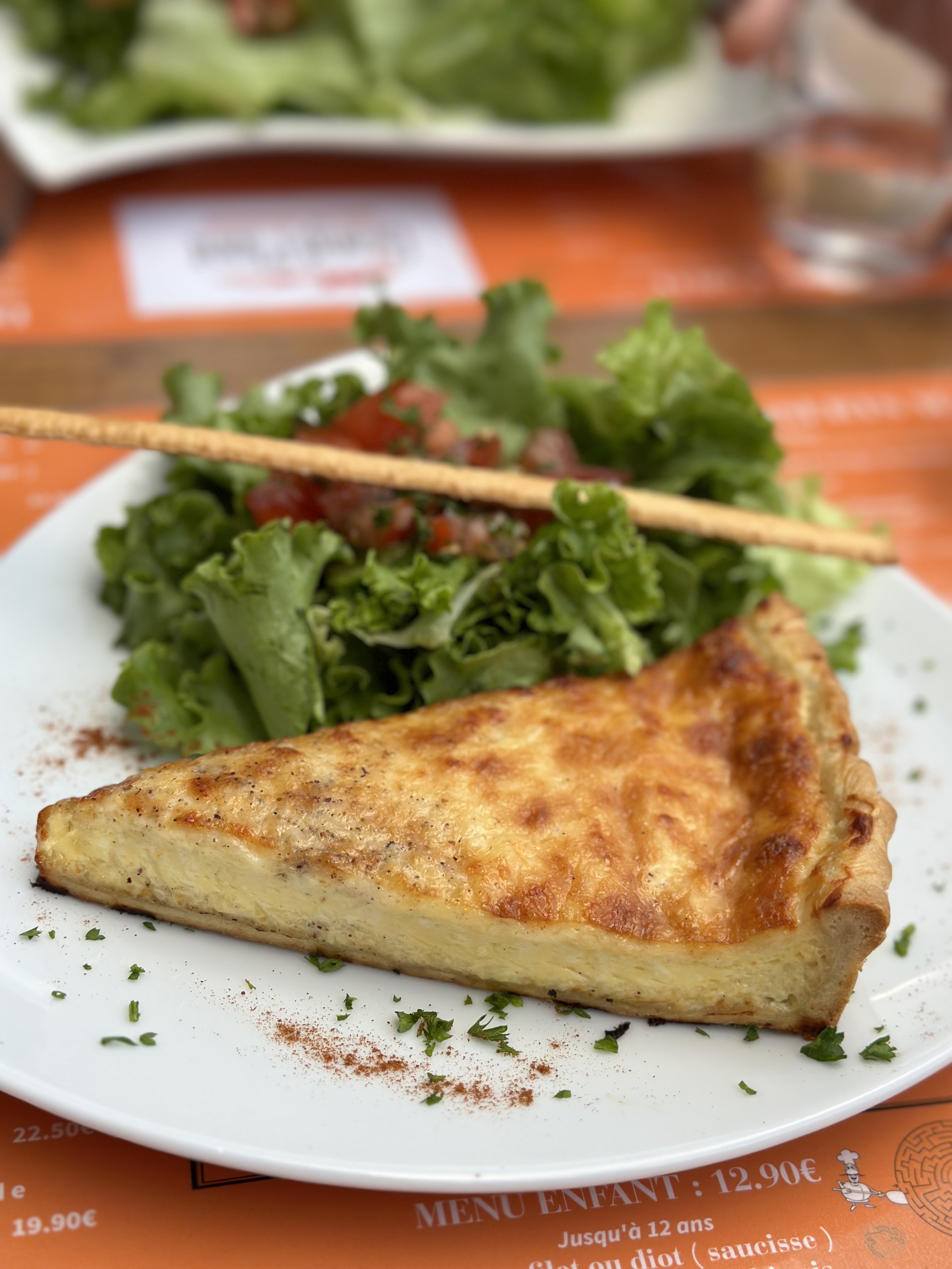 tarte au beaufort un délice.faux filet extra accompagnement trop copieux, désert un plaisir.service sans attente et personnel très agréable et souriant. éviter le restaurant à 10m de celui-ci ,personnel sans sourire ,somme partis au bout de 15 mn sans nous avoir contacté .